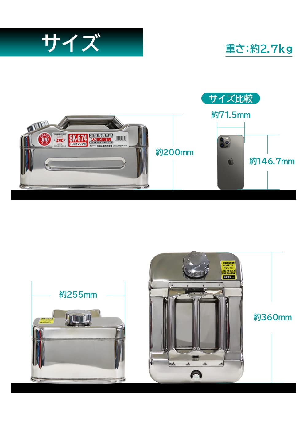 メルテック(meltec) ガソリン携行缶 10L 消防法適合品 KHK UN [ステンレス] 鋼鈑厚み:0.8mm Meltec SK-674