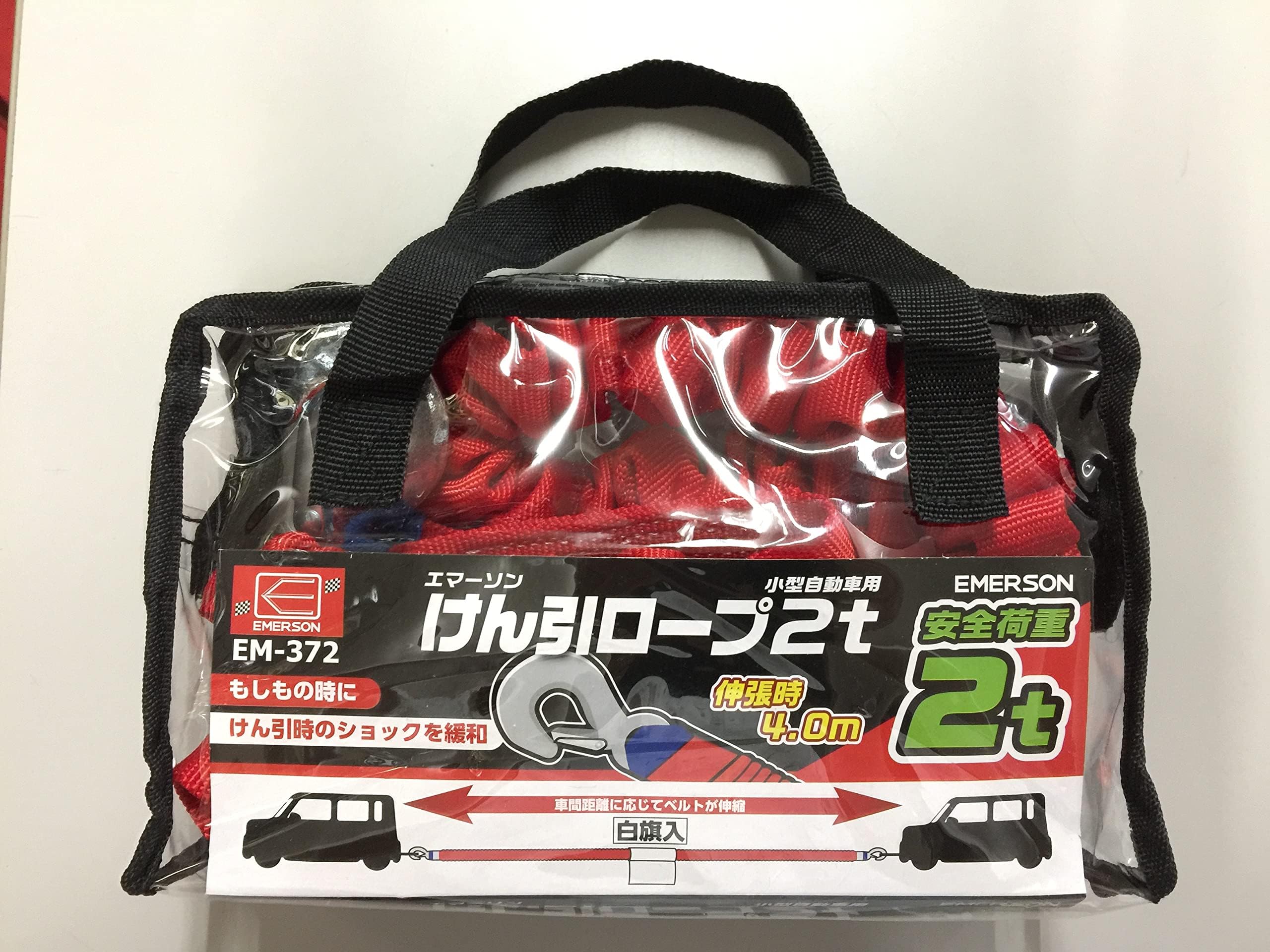 エマーソン(Emerson) 車用 伸縮式けん引ロープ 2t 伸長時4m 白旗付き 取っ手付き収納バッグ付属 【対応車種】小型自動車・普通自動車 EM-372