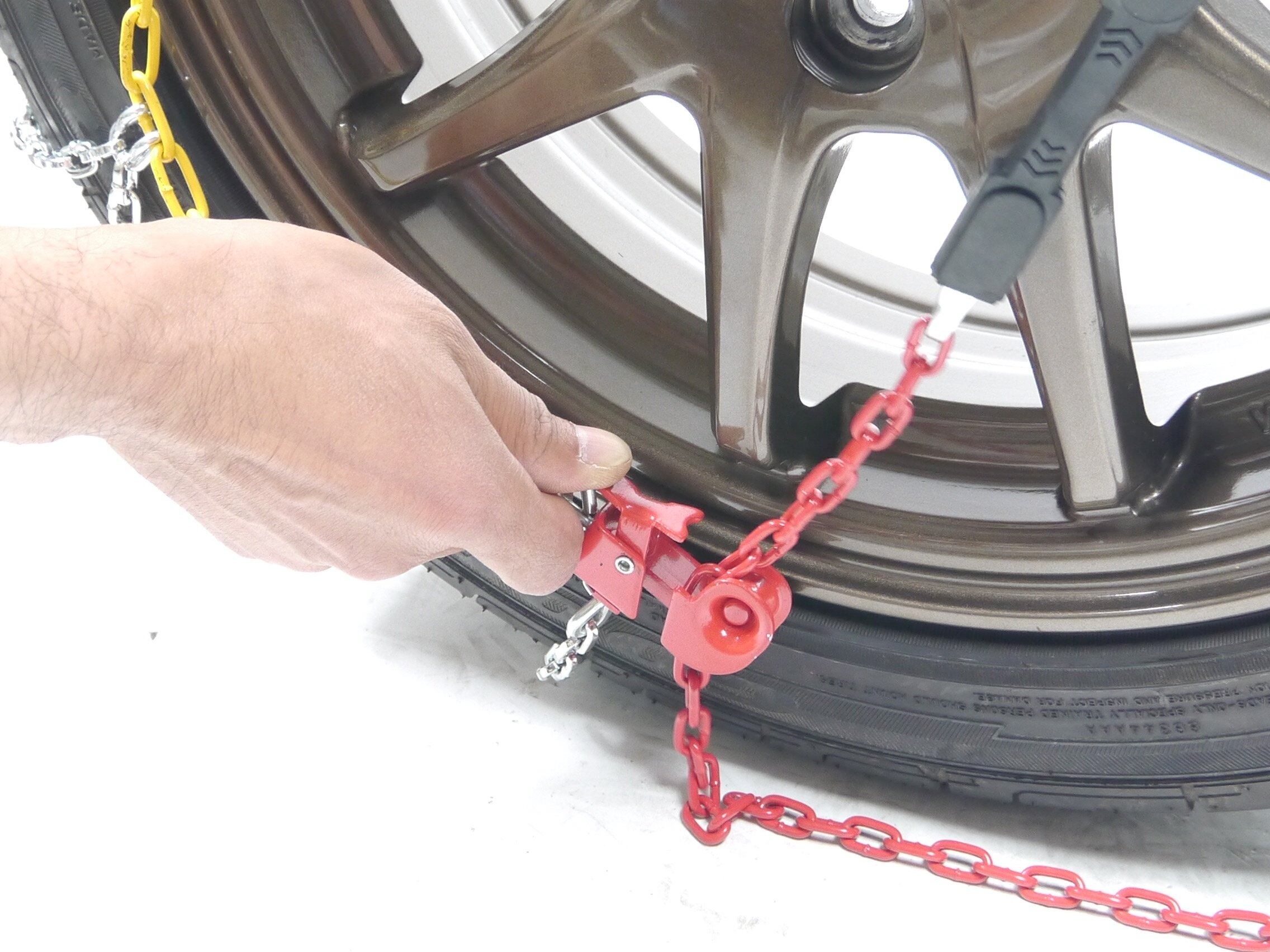●必ずタイヤに適したサイズをご使用下さい。タイヤサイズが適合していても、タイヤの空気圧・摩耗量・ホイールのリム幅などによって多少異なる場合があります。また、スタッドレスタイヤは本製品が装着できない場合があります。●本製品を使用することにより、タイヤ・ホイール・ホイールカバーをキズつける場合があります。ホイールカバーは取り外してご使用下さい。●本製品を使用するとタイヤ表面の変形や削れなどが起きる場合があります。特に著しくタイヤの溝が減っている車両には使用しないで下さい。●スノーヘルパー(雪道脱出具)との併用は、チェーンの破損や車体への損傷を引き起こす恐れがありますので併用しないで下さい。