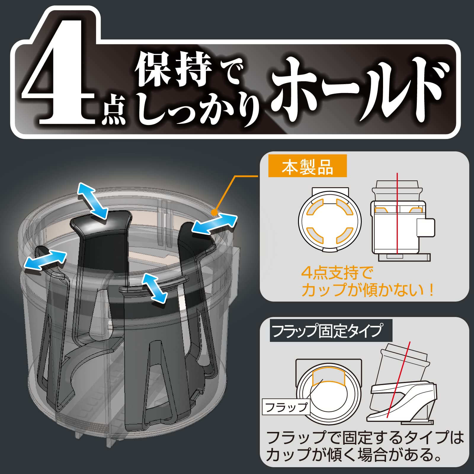 ●スポッと収まる安定感。4点支持でドリンクをホールド。(ドリンク容器の形状によっては、4点で支持されない場合があります。)