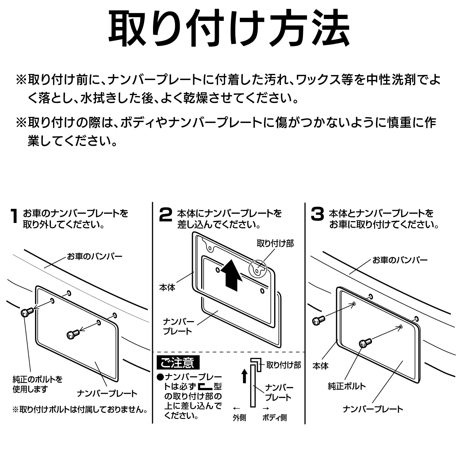 ●ナンバープレートにフィットするサイズで、お車のバンパーとナンバープレート取り付け面とのすき間が少ない車種でも取り付けできます。