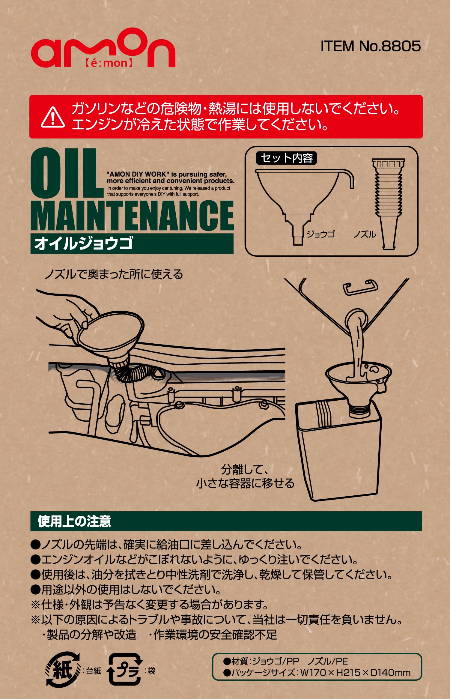 エーモン(amon) オイルジョウゴ 伸縮式140~270mm 8805