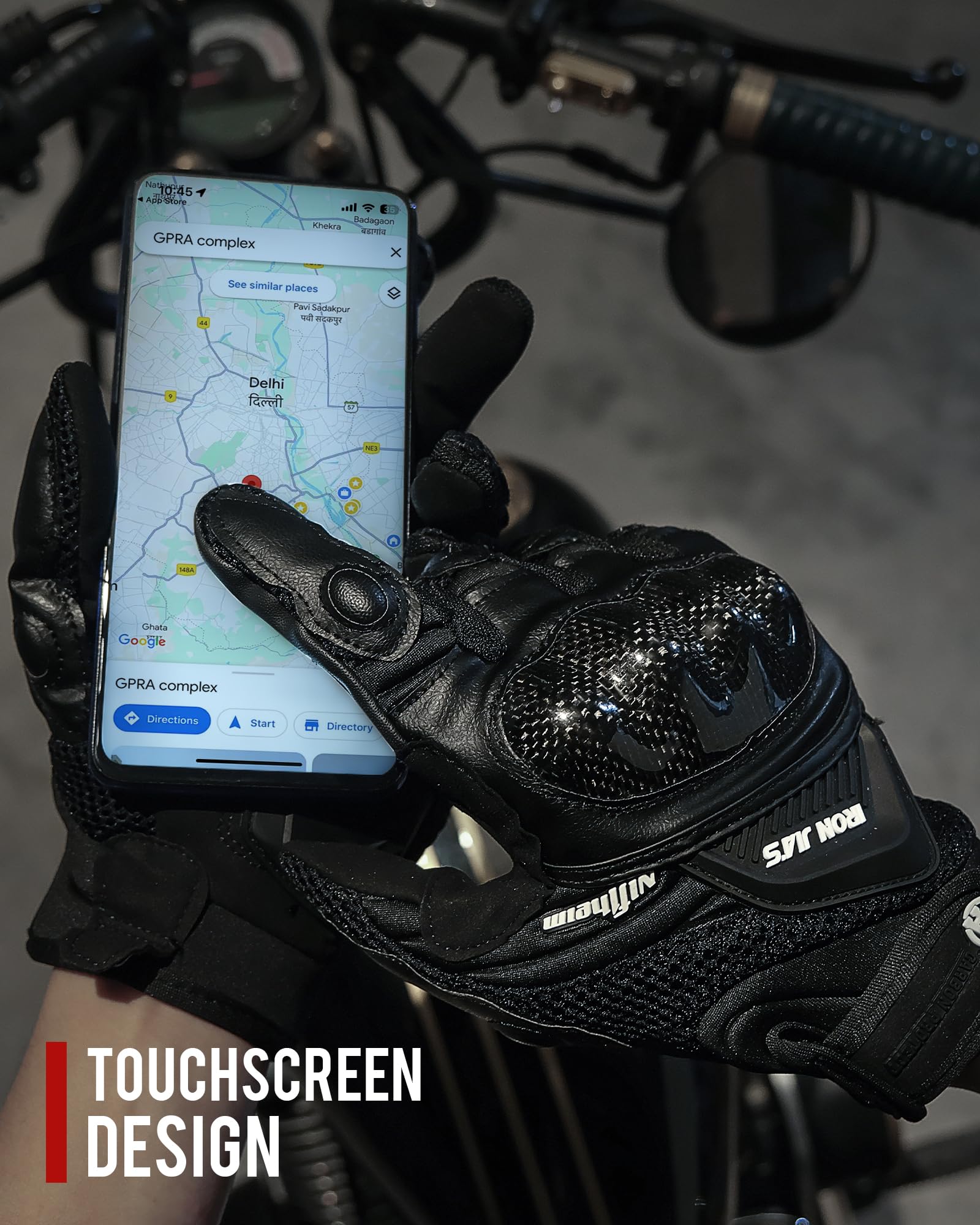 【タッチパネル対応】グローブの人差し指の先には、タッチスクリーンに対応した特殊素材を使用しており、グローブを着用したままでもスマートフォンやタブレットの操作が可能です。ナビや撮影など、高い利便性があり、手袋を外す必要はありません
