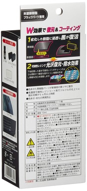 紫外線等で劣化して白く色あせした未塗装樹脂を新車時のような黒い艶に復活させるプロ仕様のコーティング剤です。高濃度可撓性レジンコート剤でツルツルの仕上りと撥水効果が6ヵ月以上持続します。