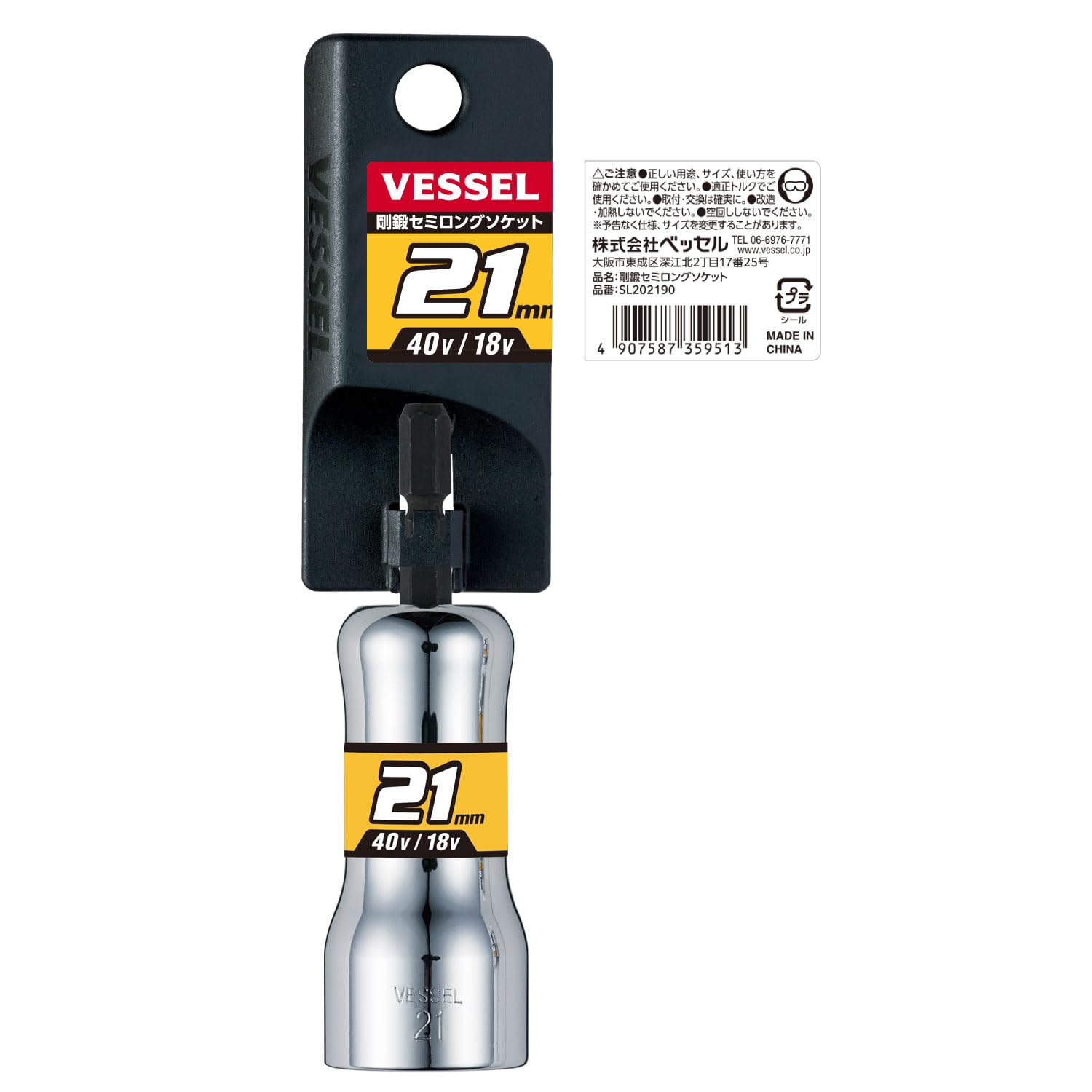 ベッセル(VESSEL) セミロングソケット 対辺21×90mm 6角 SL202190