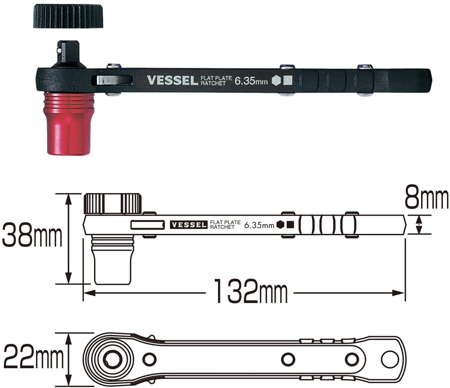 ベッセル(VESSEL) 板ラチェット ドライバーセット (ビスキャッチ1個、プラス、マイナス、ヘックスビット 10本付) TD-73MC