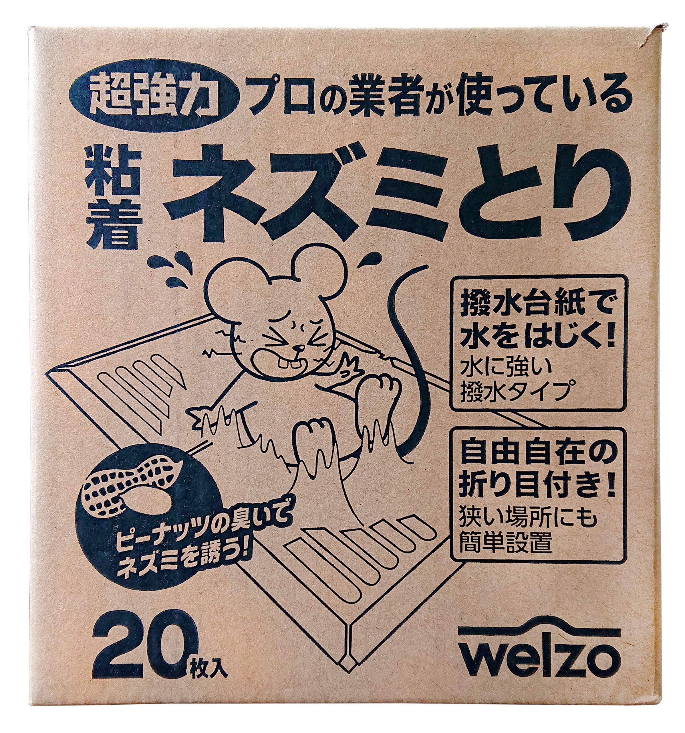 ウェルゾ(Welzo) 粘着ネズミとり 20枚 【プロの業者が使っている】【撥水台紙で水をはじく】【ピーナッツの臭いで誘う】【キッチン周りやゴミ置き場に】大容量 まとめて設置 ネズミ取り 鼠取り 駆除