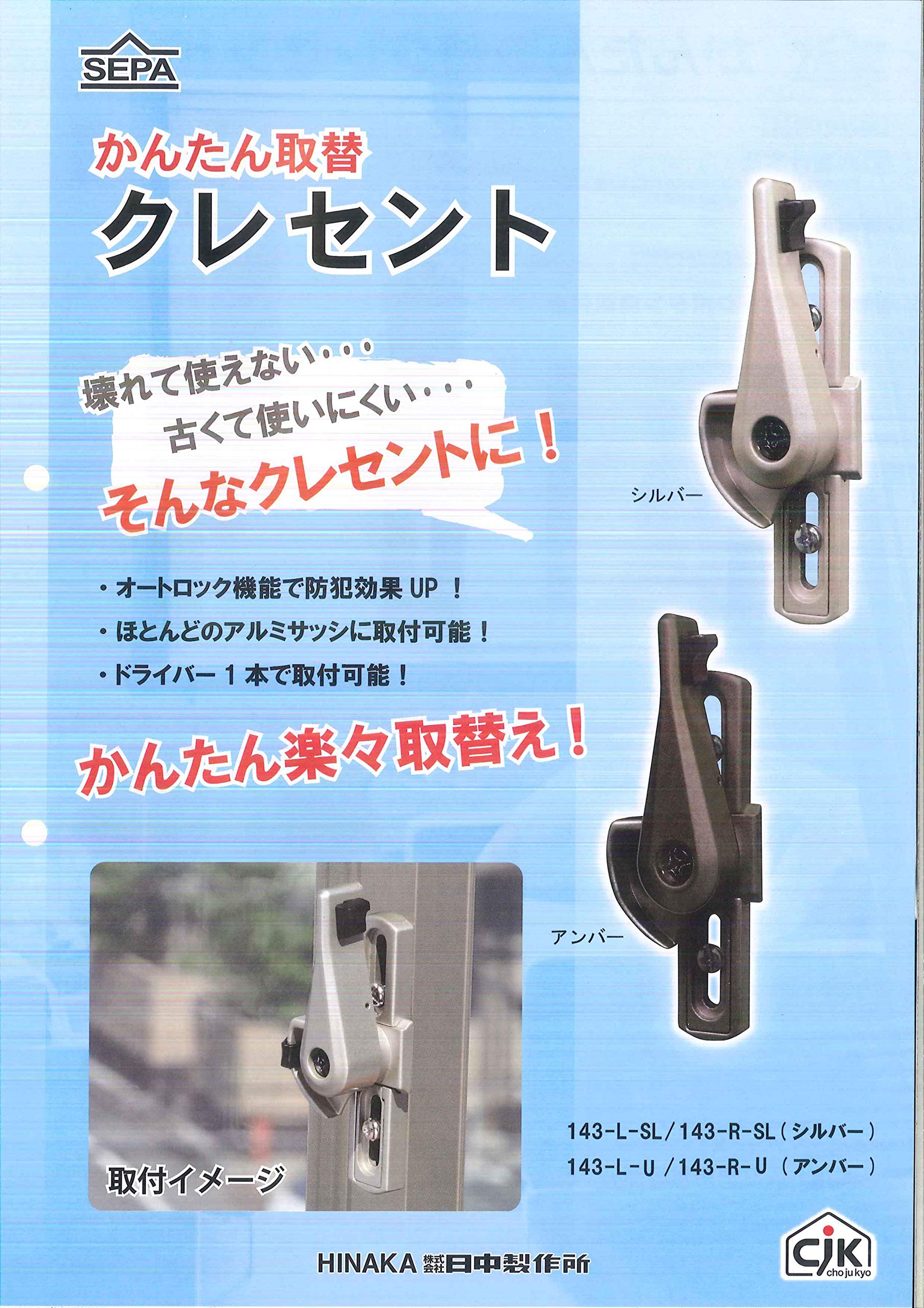 日中製作所 かんたん取替クレセント 万能型クレセント アンバー色 L型