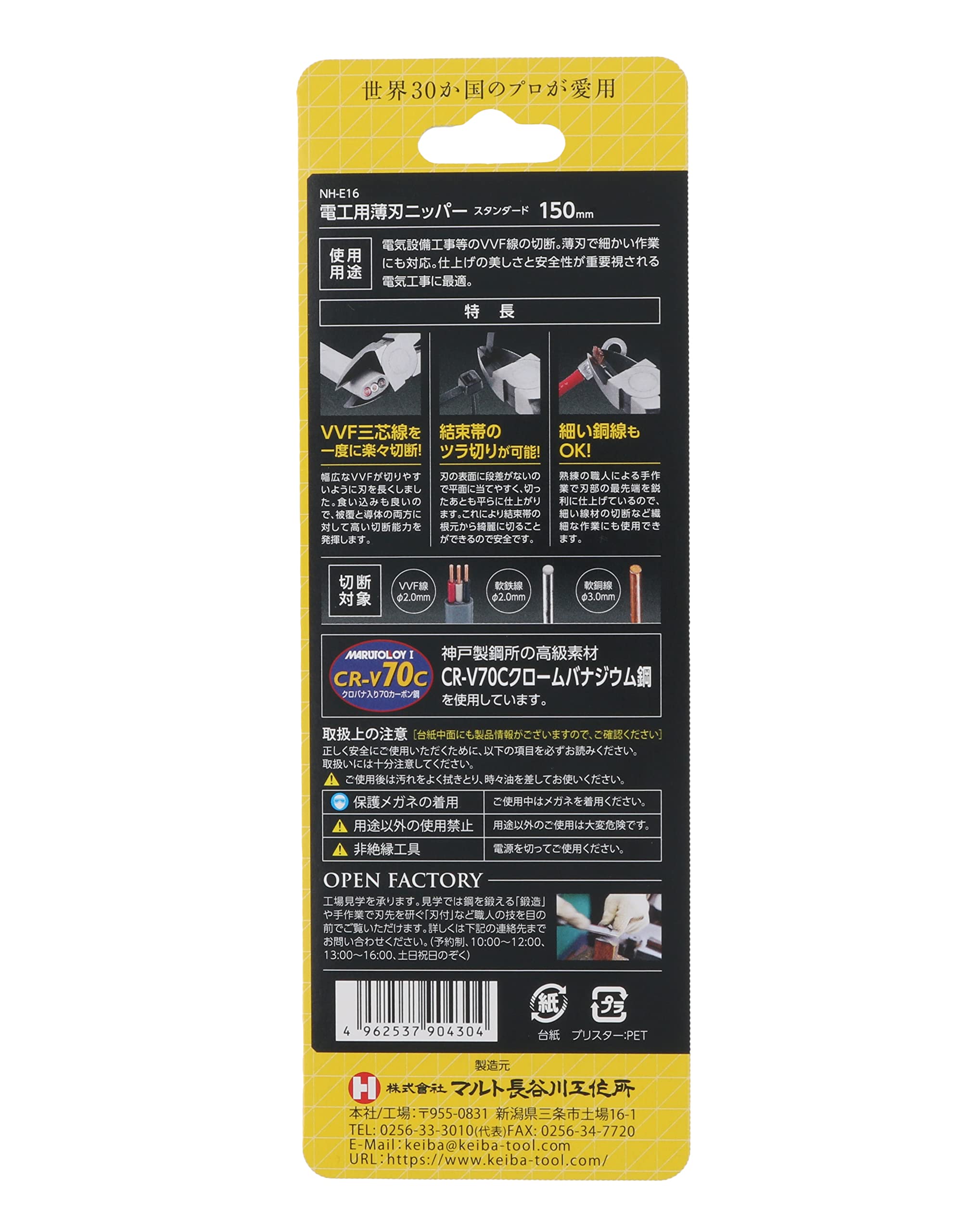 ケイバ 電工用薄刃ニッパー スタンダード 150mm NH-E16