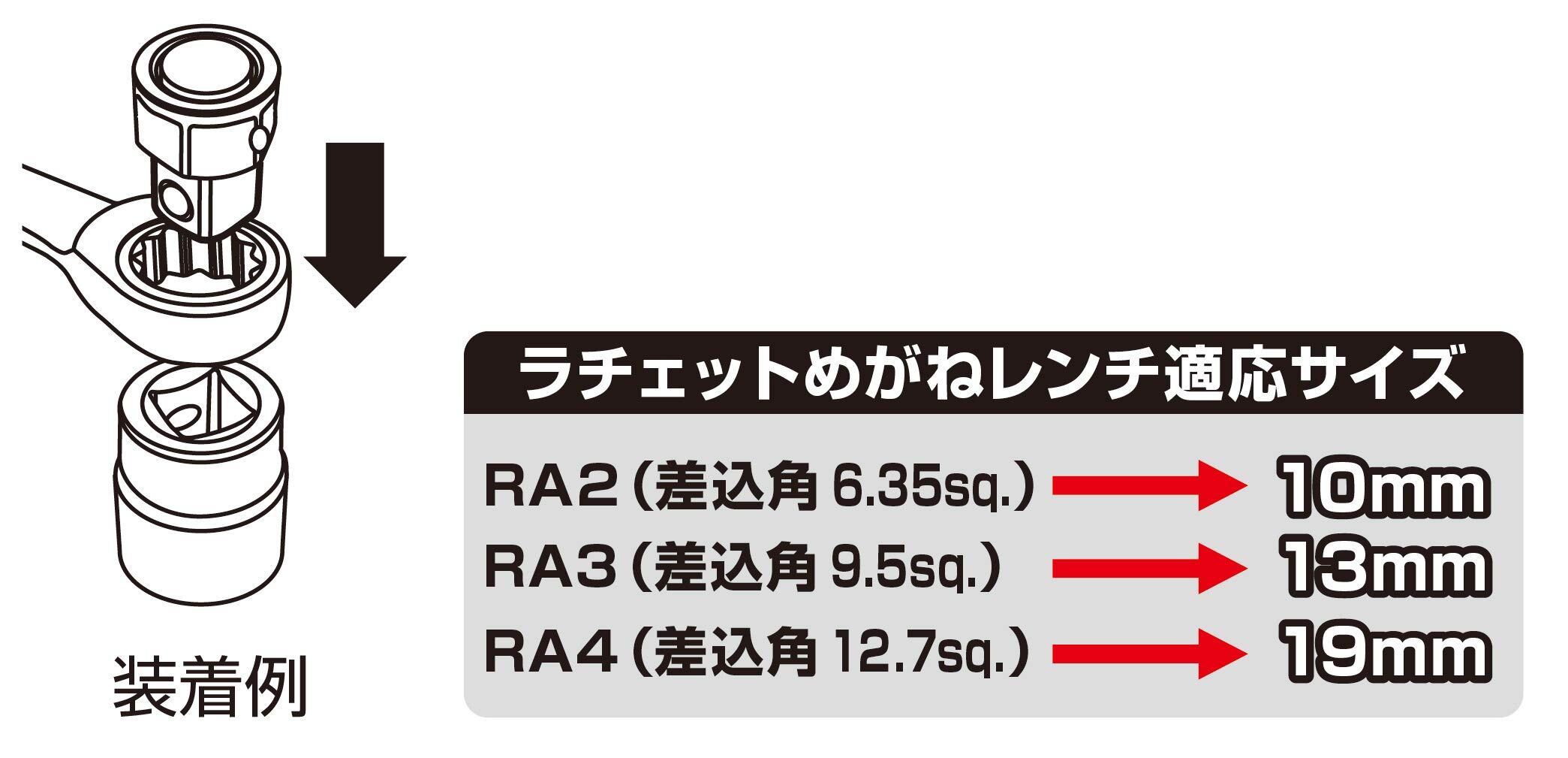 ラチェットめがねレンチに取り付けることで、ソケットを装着できるようになります。