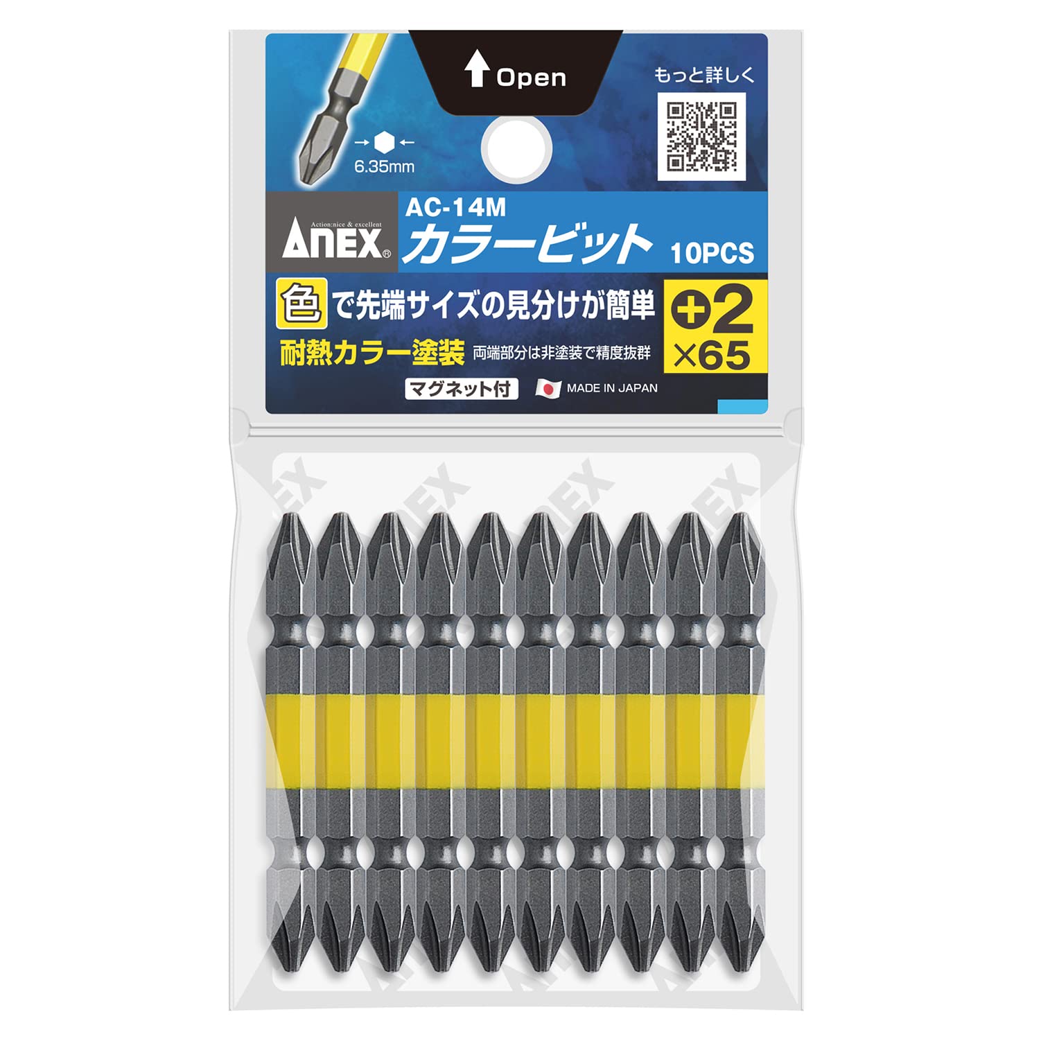 アネックス(ANEX) カラービット 両頭 +2x65 10本袋 AC-14M