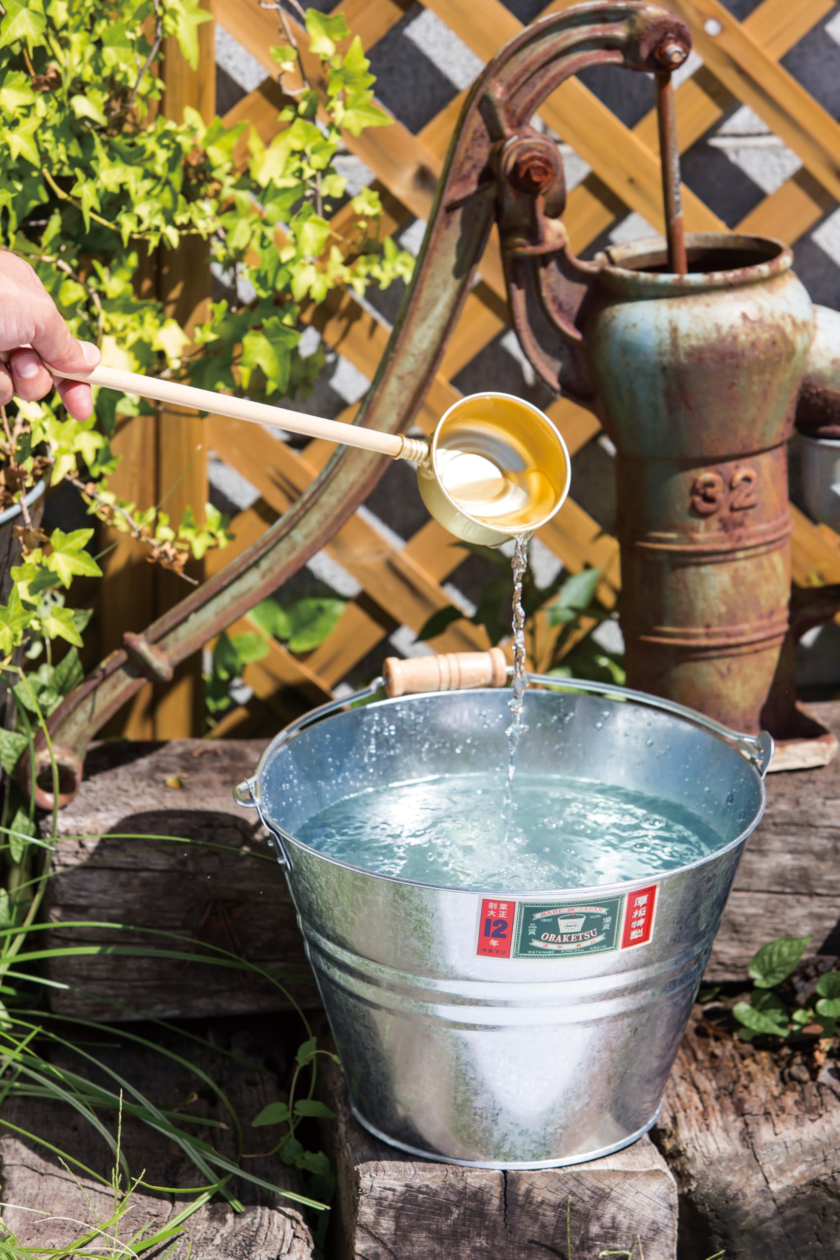 シンプルでモダン、でもどこかレトロな雰囲気のバケツ。室内・屋外どこにでもマッチします。