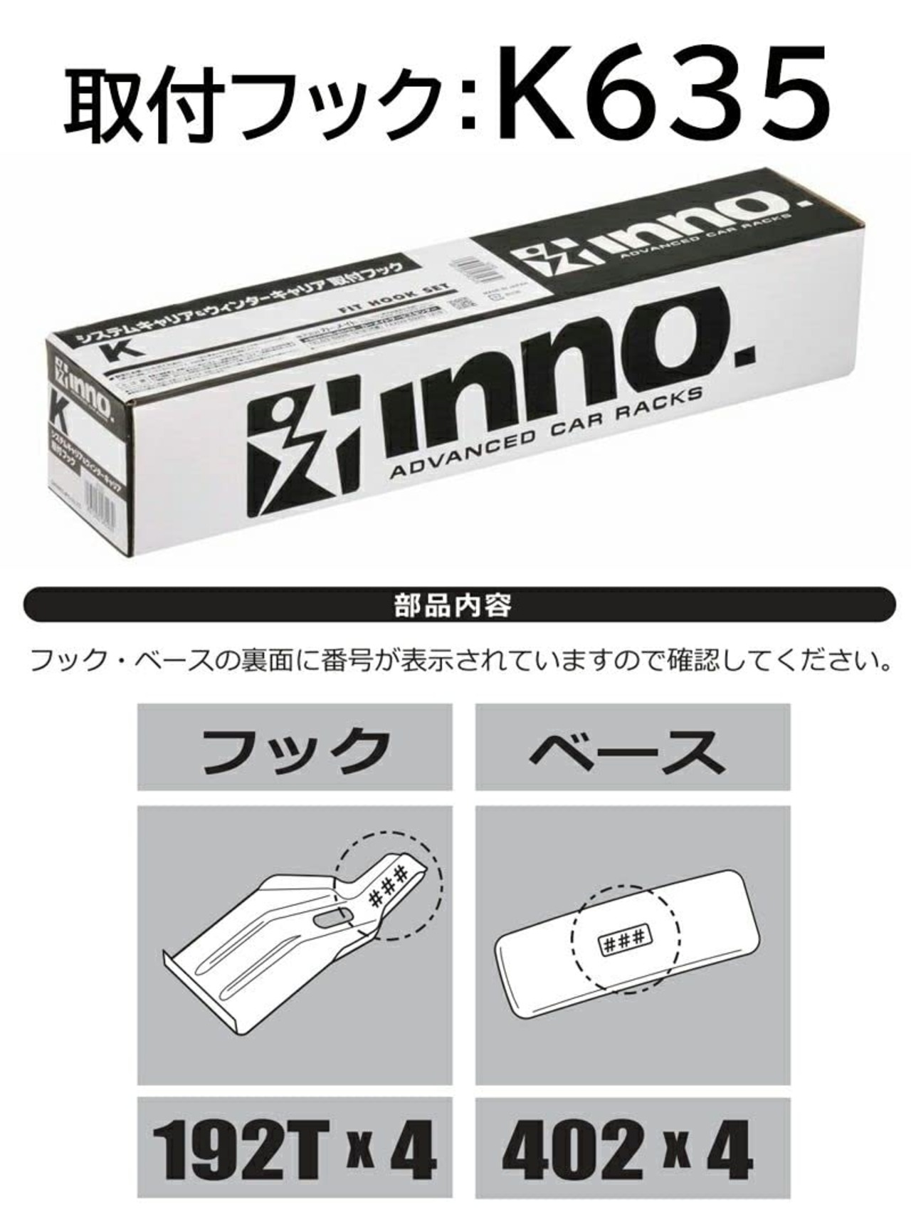 カーメイト(CARMATE) ルーフキャリア inno ベーシック取付フック アウトランダー(R3.12~) K635