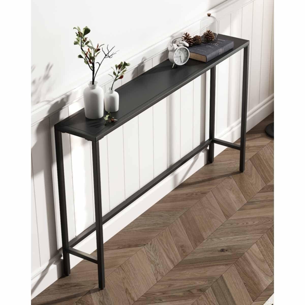 狭い コンソールテーブル スリム サイドテーブル 幅120cm*奥行20*高さ75cm 細長い 丸角加工 飾り棚 省スペース 木目調 玄関収納 バルコニーリビングルームオフィス用 (Color : ブラック)