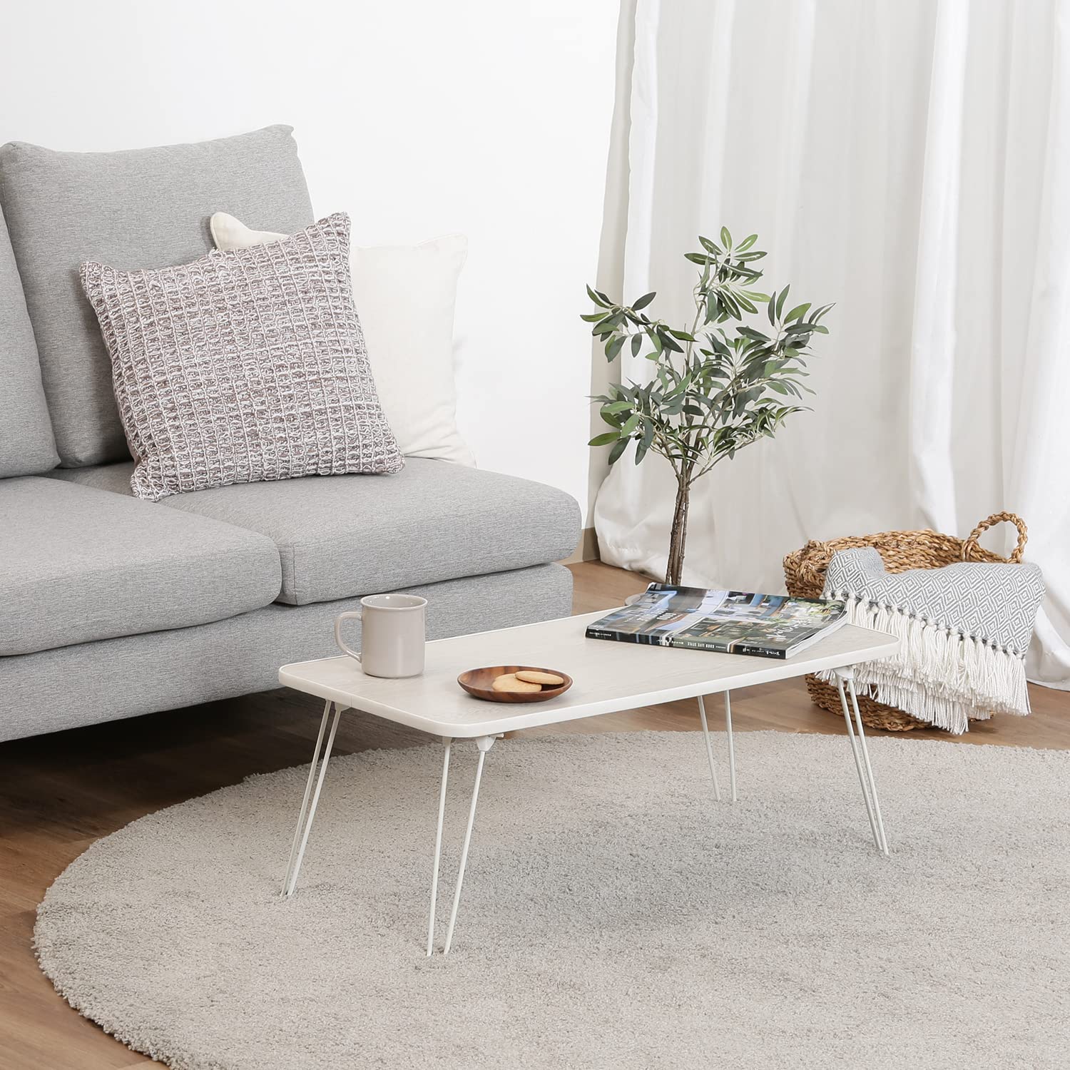 不二貿易 ローテーブル 四角 折りたたみテーブル ミニ 幅80×奥行40×高さ31cm ホワイトウォッシュ 完成品 角が丸い 持ち運び簡単 アウトドア ピクニック 10863