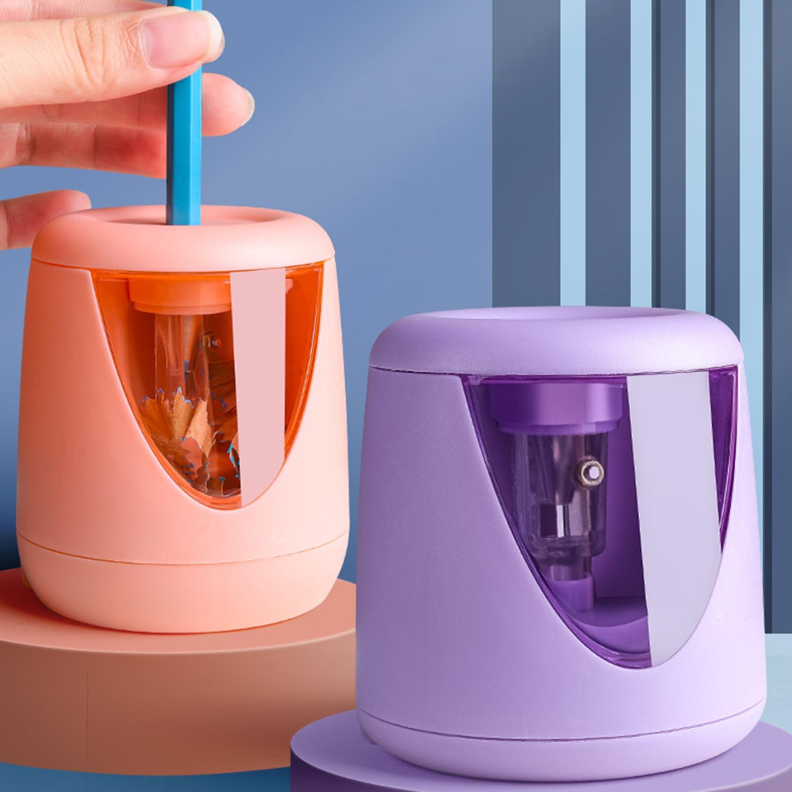 Qinlenyan 鉛筆削り 電池式 電動鉛筆削り 目に見える削りくず入れ 省力化 電動鉛筆削り 子供へのギフト、作品、アーティストパープル
