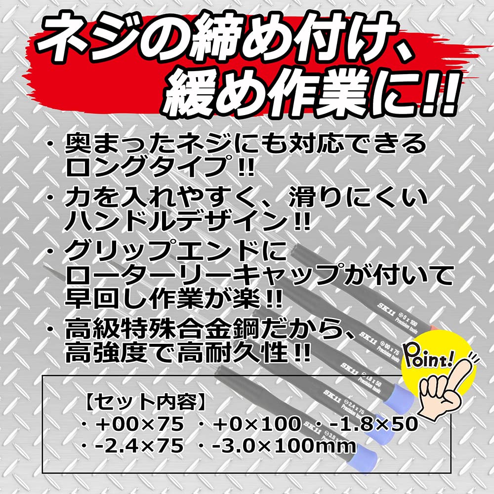 SK11(エスケー11) 精密ドライバーセット ロングサイズ 5本組 +00・+0・-1.8・-2.4・-3.0 EPS-520