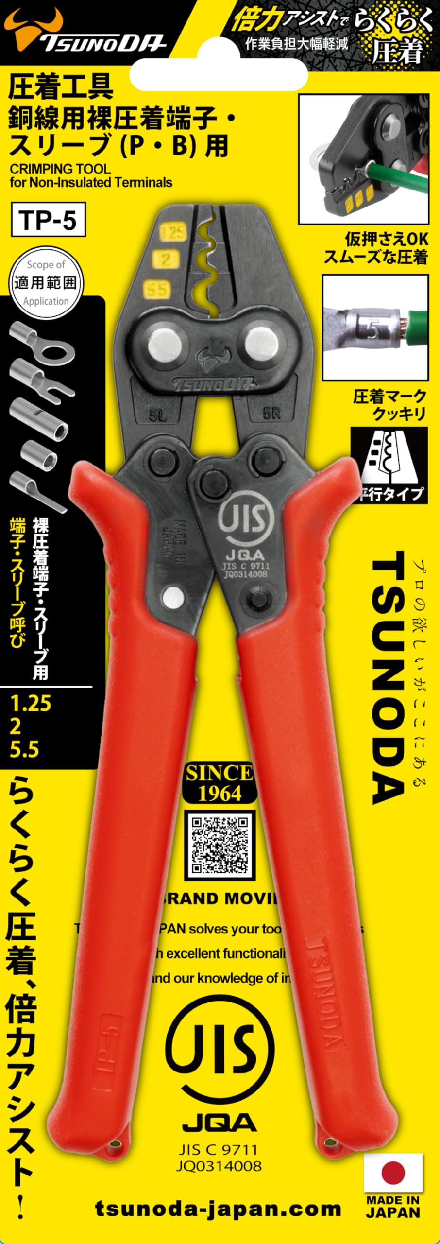 ツノダ(TSUNODA) 圧着工具 裸圧着端子・裸圧着スリーブ用 TP-5 JIS 日本製