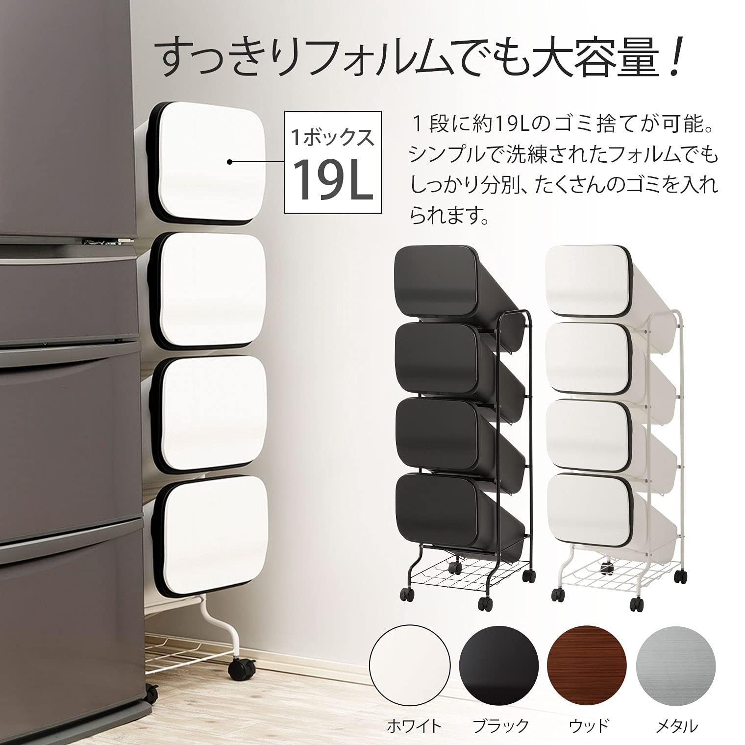 リス(RISU) 分別 ゴミ箱 smooth スタンドダストボックス4段 ウッド 76L (19L×4) 4P ウッド 資源ごみ スタイリッシュ プッシュオープン 省スペース GBBH034