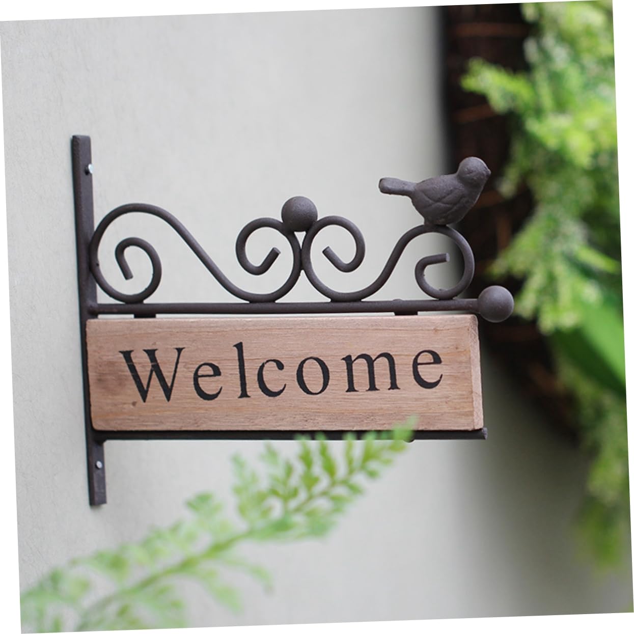 玄関ドアの装飾田舎風とウェルカムデザイン、意味があり美しい、アートな雰囲気を作り出しています。ミニラベルは鳥の模様の装飾が施されたクリエイティブなウェルカムサインです。ヴィンテージウォールウェルカムは店舗を飾るのに最適な装飾品です。 .壁に取り付けられたウェルカムサインは木と鉄でできており、 で高強度です。