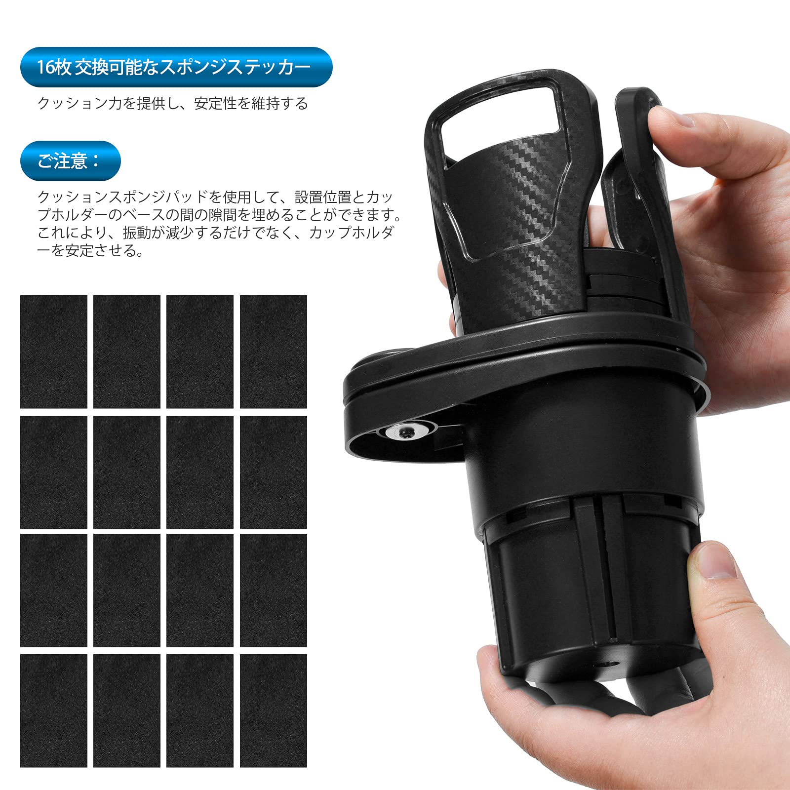 【安定力抜群】走行中のバランスを崩さないように、上部のカーカップホルダーには衝撃を吸収する滑り止めパッドがあり、付属のEVAスポンジパッドを使用して、取り付け位置とカップホルダーベースの間に隙間を埋め込む必要があります。これにより、ガタツキ対策ができるし、振動が減少し、カップホルダーをより安定させます。