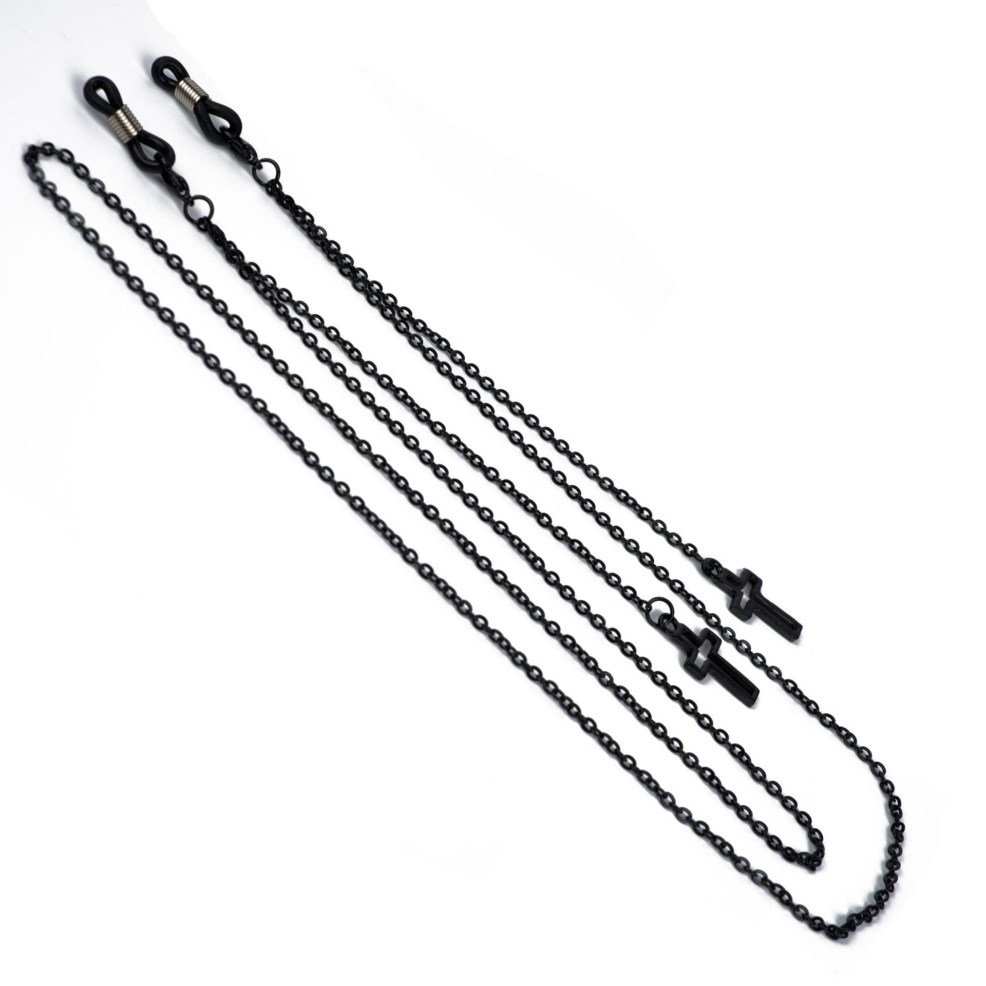 HAISENGO ブラック コウモリ メガネチェーン レディース メンズ カワイイ メガネチェーン ホルダー ストラップ コード サングラス アイウェア用 バット&クロス Medium