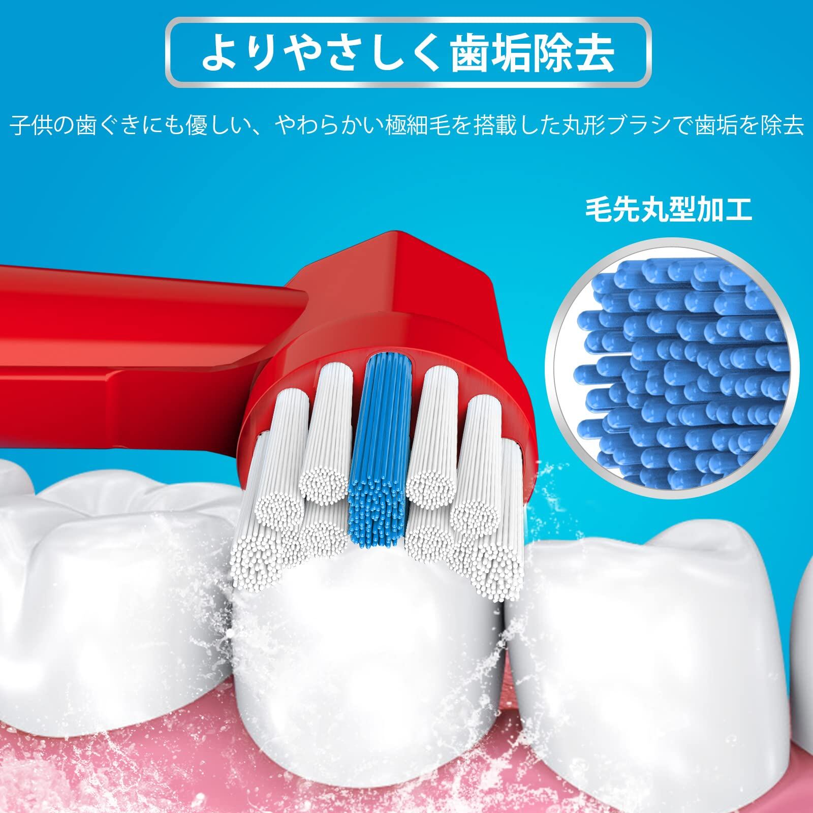 【歯ブラシの交換時期】古い歯ブラシほど雑菌が繁殖しやすい、毛先が広がると洗浄効果も激減していますので、高い歯垢除去率をキープするため、歯科医は、少なくとも3ヶ月ごとに歯ブラシヘッド(braun oral b 用 替えブラシ 子供)を交換することをお勧めします。また、毛が落ちないようにする独特の360°全方位植毛技術を採用しています。