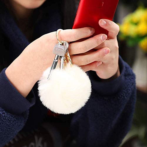 YideaHome キーチェーン ファー キーボルダー 8cmバックチャーム 可愛い 上質 もこもこ ふわふわ ボンボン キーリング レディース ストラップフェイクレックスラビットポンポン バッグオーナメント (ベージュ)