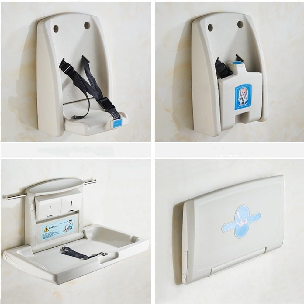 【新着商品】おむつ交換 壁掛け式 ベビーおむつ交換台 安全ストラップとバッグフック付き 壁取り付け式 25kgの負荷 おむつ交換テーブル 省スペース 折りたたみ式 多機能おむつテーブル 組み立てが簡単 商業トイレ 保育 空港 (A) | POPストア