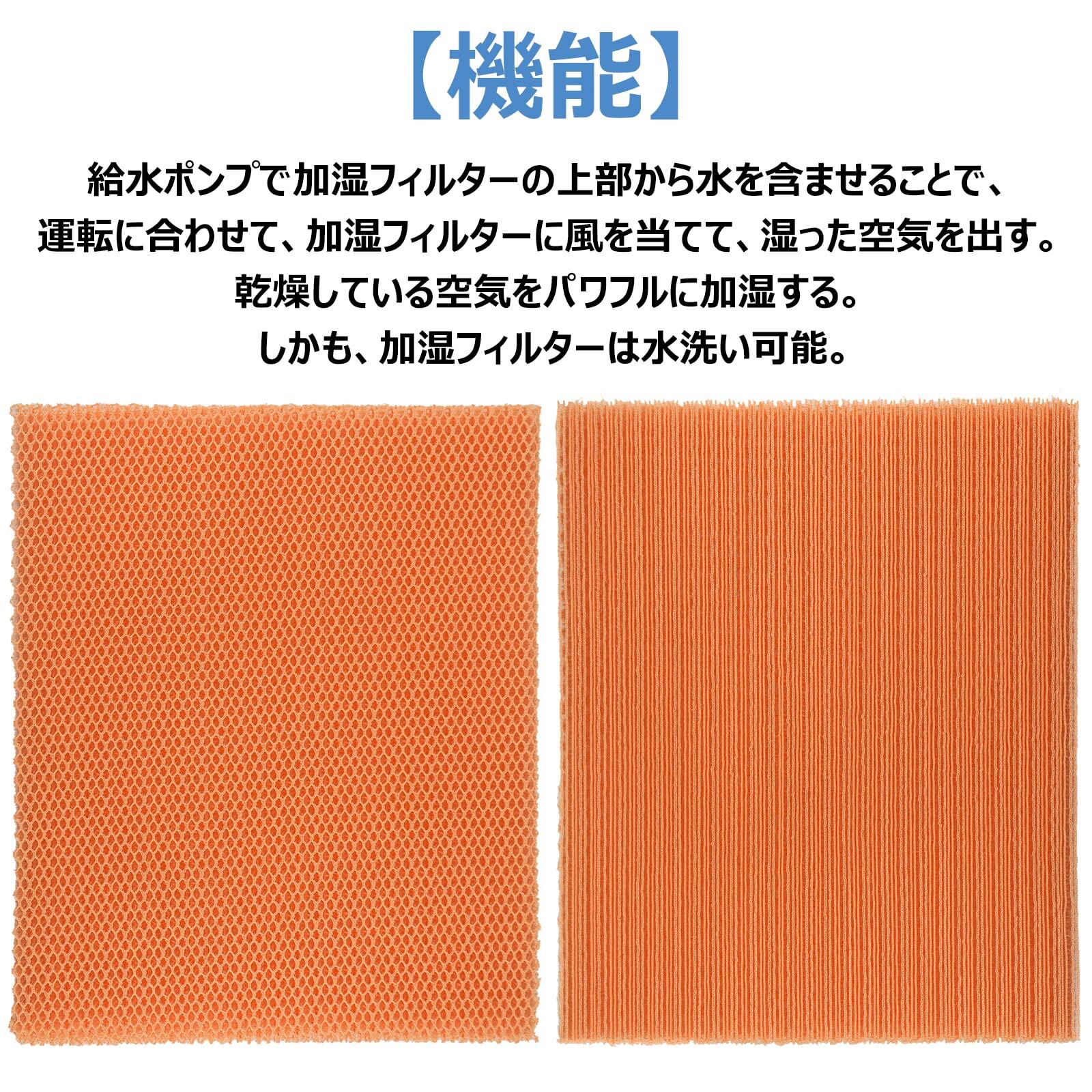 【機能】給水ポンプで加湿フィルターの上部から水を含ませることで、運転に合わせて、加湿フィルターに風を当てて、湿った空気を出す。乾燥している空気をパワフルに加湿する。しかも、加湿フィルターは水洗い可能。