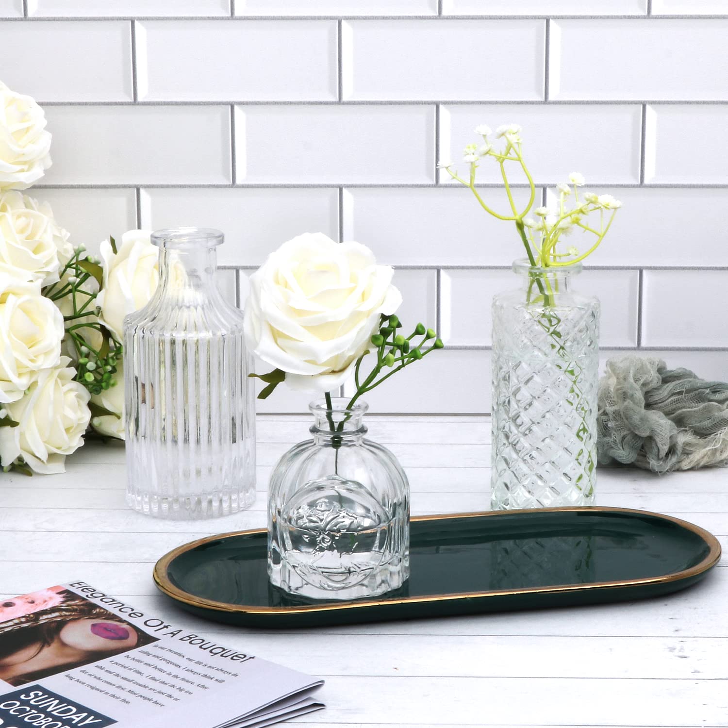 ガラスつぼみ花瓶10個セット、結婚式のセンターピーステーブルデコレーション用の小さな花瓶、クリアヴィンテージエンボスミニ花瓶、パーティーやホームデコレーション用の花瓶のフラワーアレンジメント