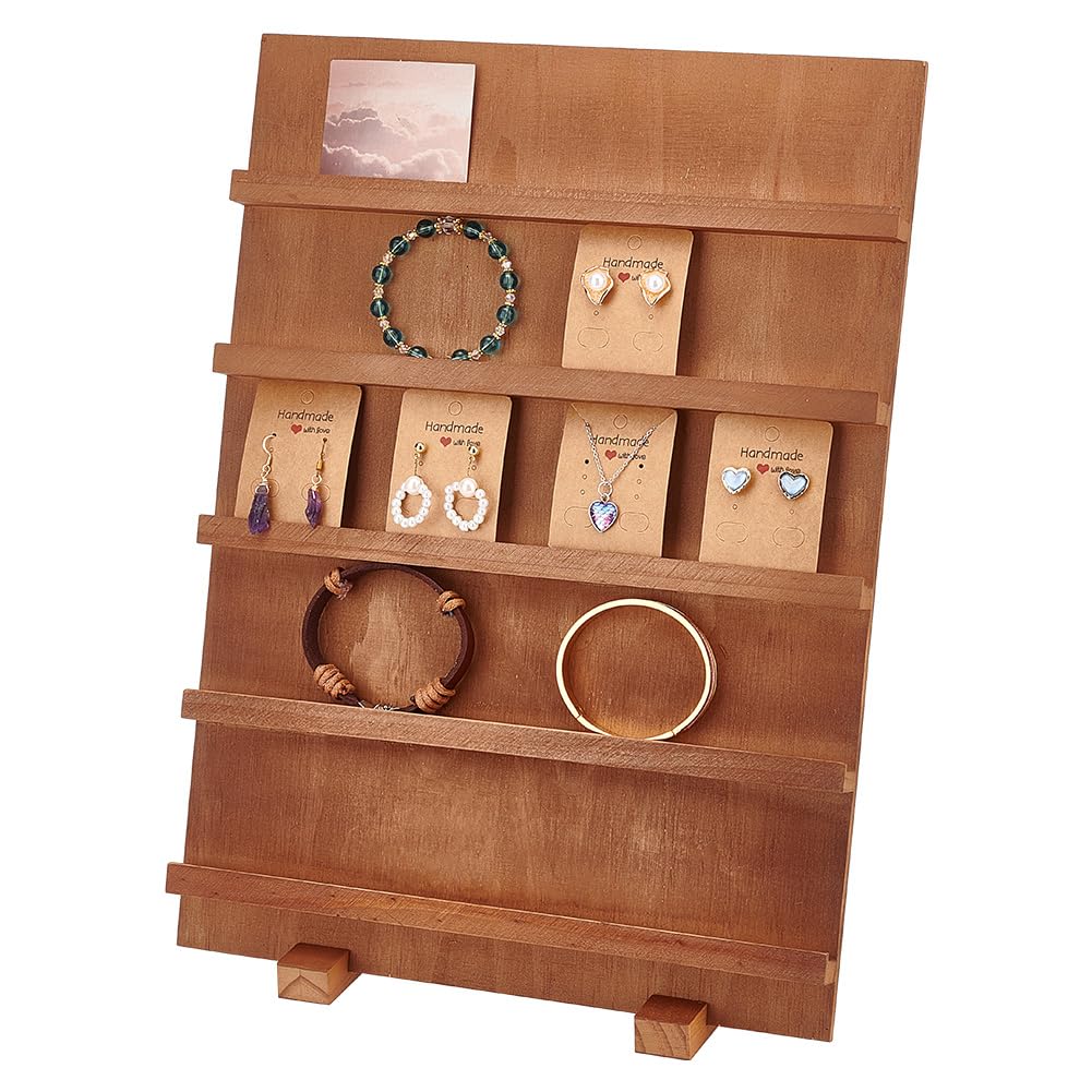 PH PandaHall 木製フレーム ジュエリーディスプレイラック 5層 ジュエリー収納 ジュエリースタンド 移動可能 販売用 小売り ディスプレイ用品 卓上ショー イヤリング ネックレス ブレスレット リング ウォッチ用 焦茶