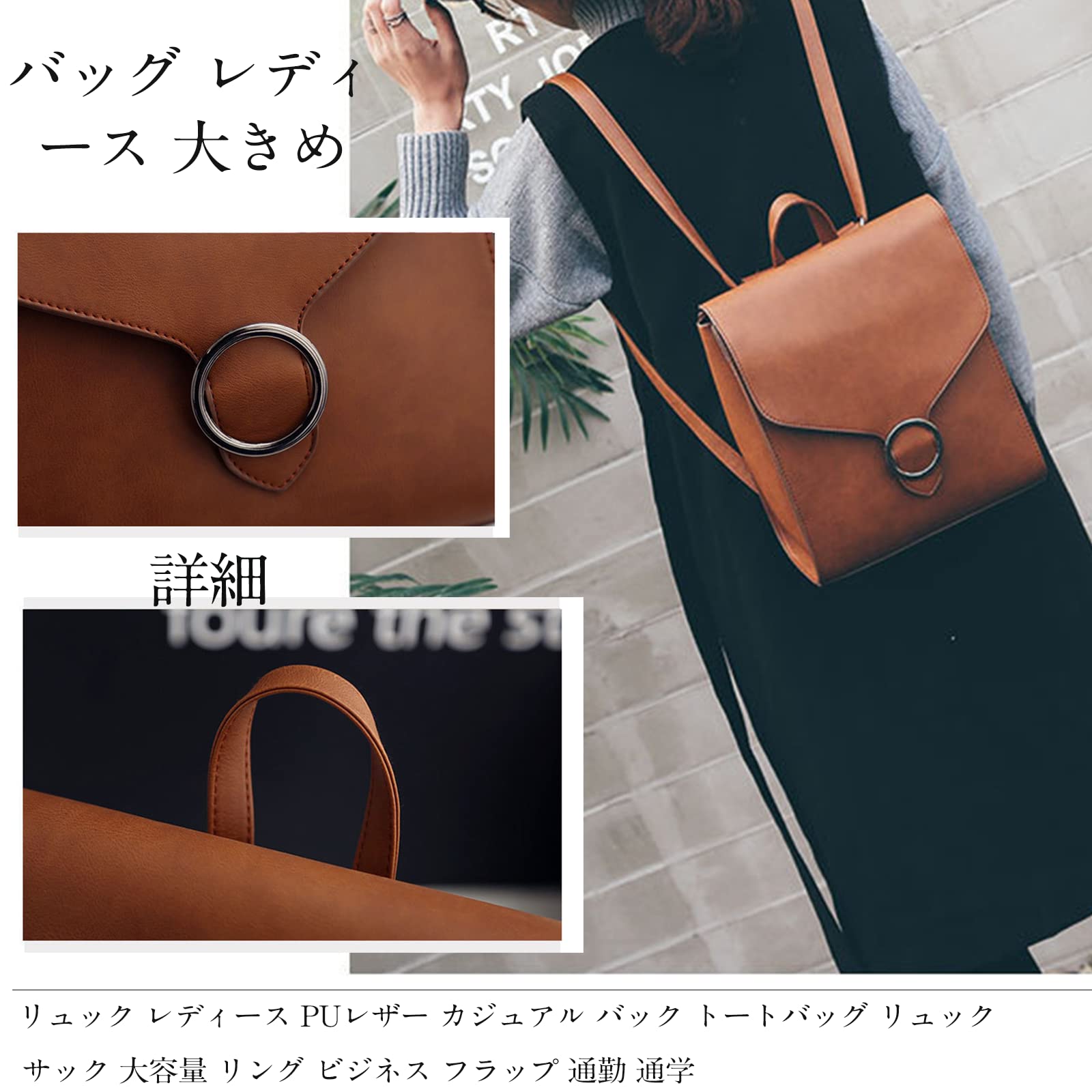 【 おしゃれ女子 リュック蓋付きの大きいサイズ】Fサイズ:高さ28 cm、長さ24 cm、幅9cm、 ストラップは調節可能。計測に付きましては手測りとなりますので 若干の誤差はご了承ください 。簡単にコーディネートに取り入れやすく、一枚でトレンドスタイルに格上げしてくれる注目の通勤 リュック です。リング付きの飾りにより高級感があふれる。