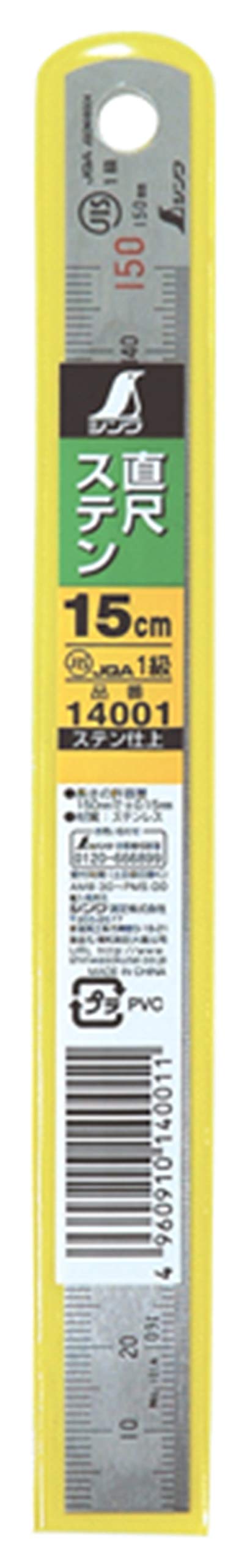 シンワ測定(Shinwa Sokutei) 直尺 ステン 15cm JIS1級 赤数字入 14001