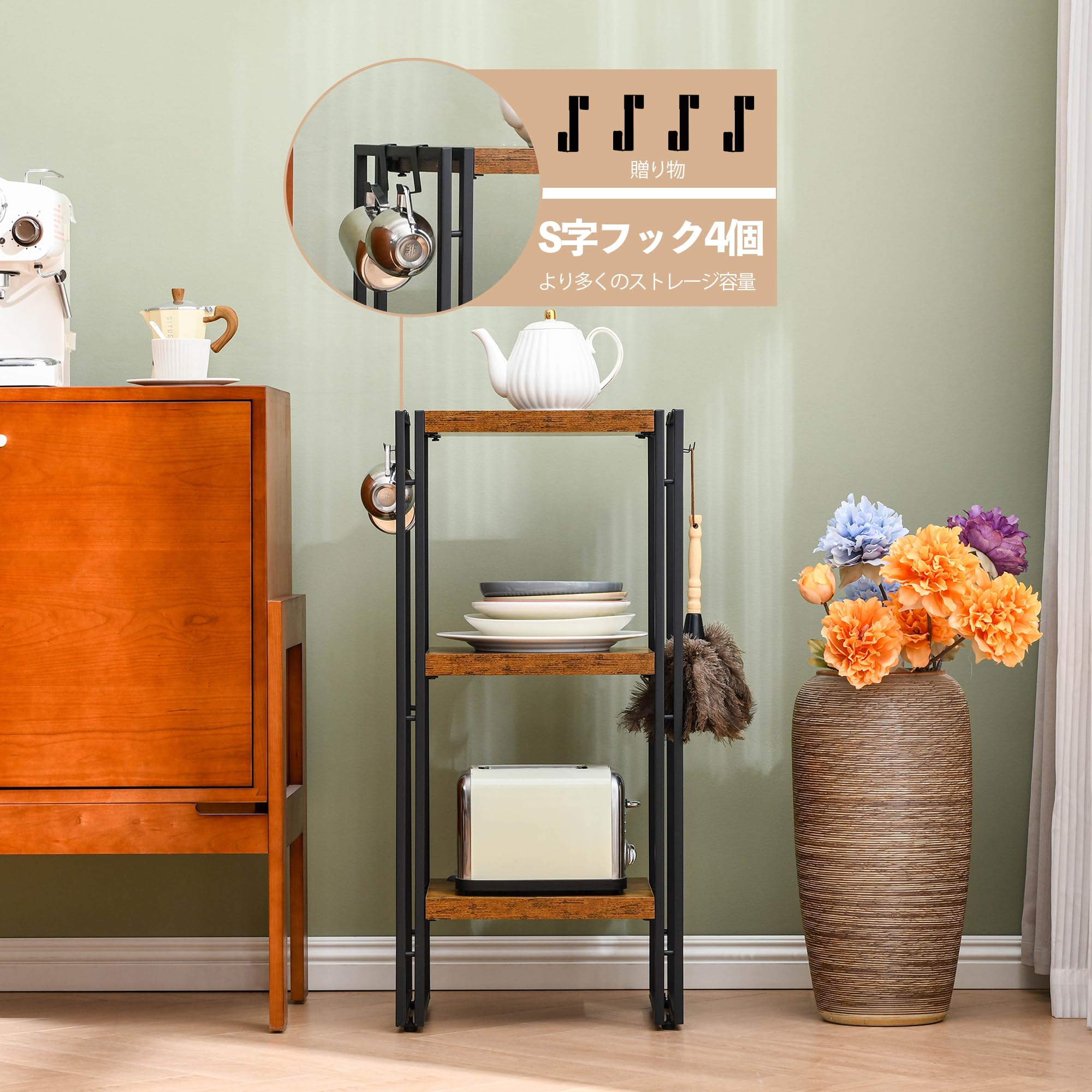HCHQHS ラック オープンシェルフ 3段 木製 収納 本棚 オープンラック キッチンラック リビングラック 棚 おしゃれ 北欧 木目調 組立簡単 ディスプレイラック スチールラック 幅40cm