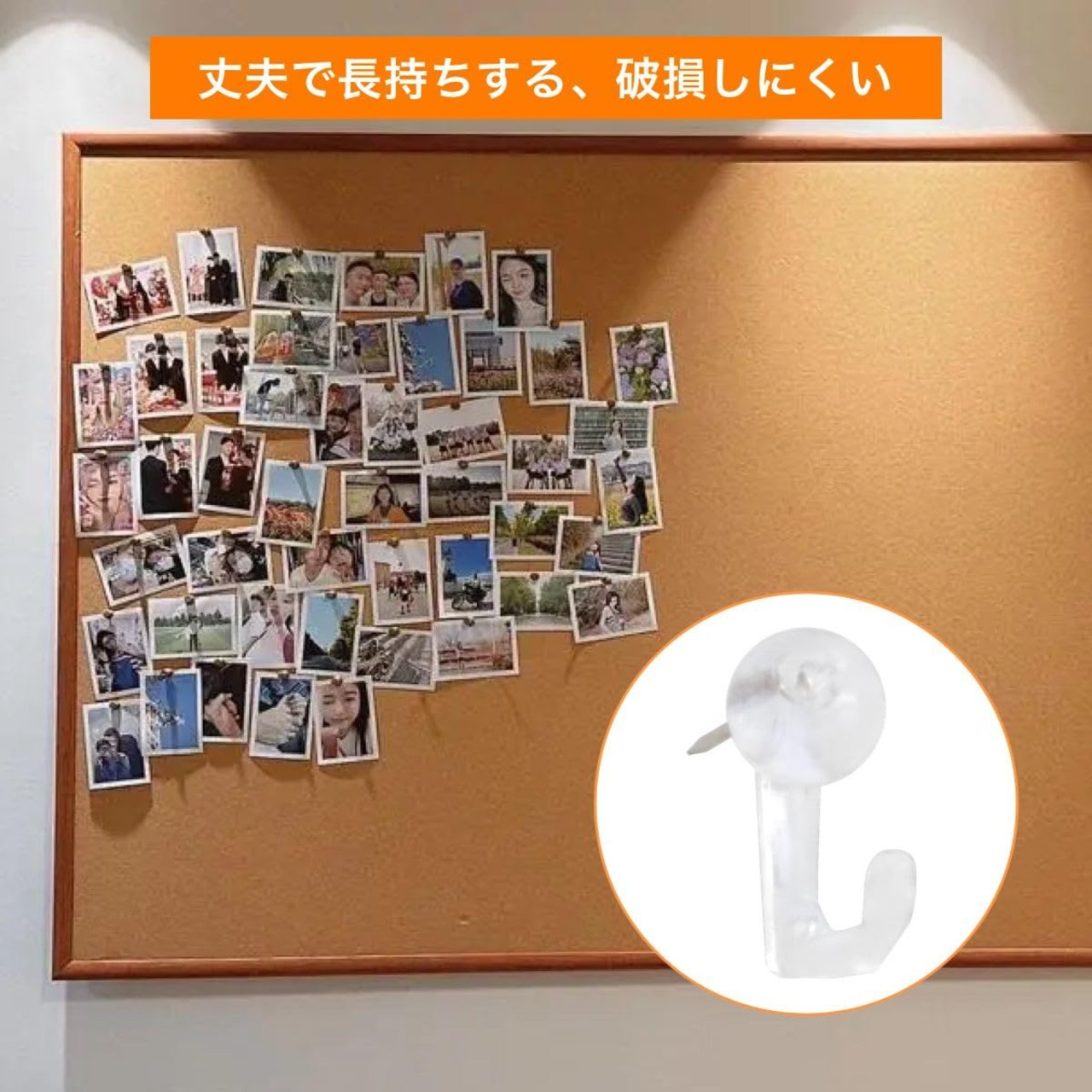 この透明画鋲フックセットは、50個入りで収納ケース付きの便利なアイテムです。自宅やオフィス、教室などの様々な場所で使用でき、グラフ、カレンダー、ポスター、写真、鍵などを吊るすのに最適です。透明色のデザインで目立たず、インテリアに優雅さをプラスします。 ピンフックは合板、板、石膏ボード、密度板などの壁に簡単に手動で取り付けることができます。ただし、セメントやセラミックの壁には使用できないのでご注意ください。どんなスタイルの部屋にもマッチし、便利かつスタイリッシュに物を掛けることができます。 また、製品に関して不明点や問題がある場合は、カスタマーサポートにお気軽にお問い合わせください。お客様のご要望に迅速かつ誠意を持って対応いたします。この画鋲フックセットで、生活空間をより便利で美しく整えてみてください。