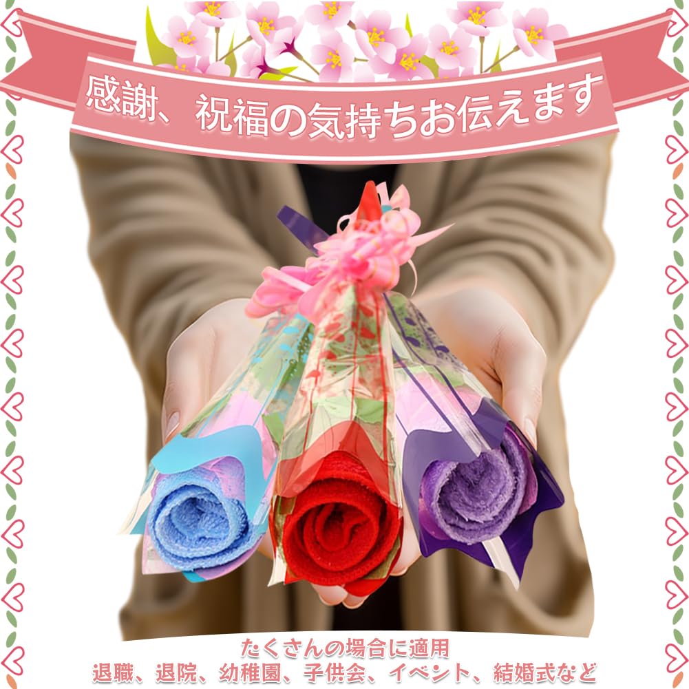 ●大切な人に感謝の気持ちを手渡しでプレゼント、コットンタオルで作られたバラの花束10本セットです。手持ち安くてプチギフトとして、最高です。