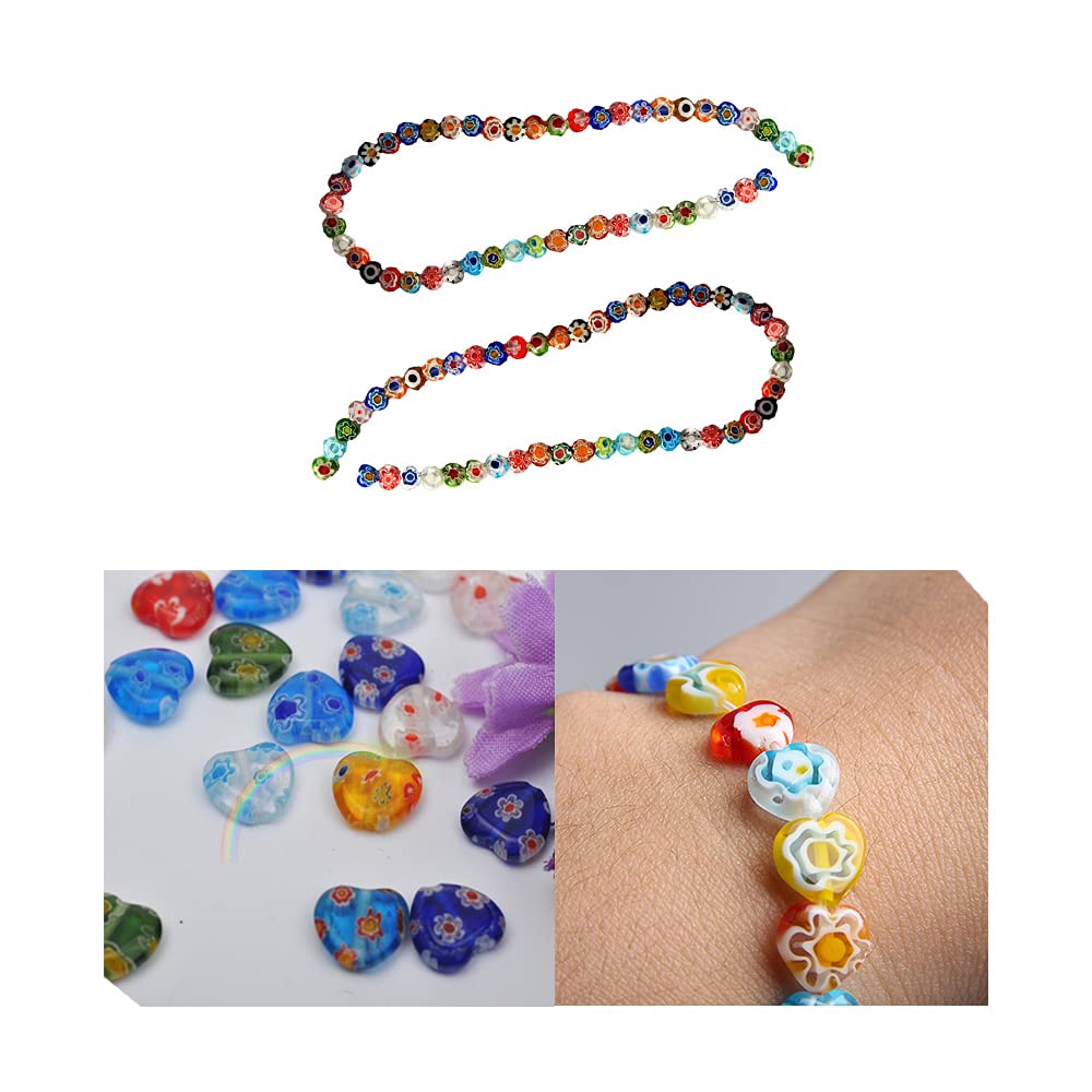 パッケージ内容:95個バルクカラーガラスフラワーミルフィオリハートビーズジュエリーDIY製作