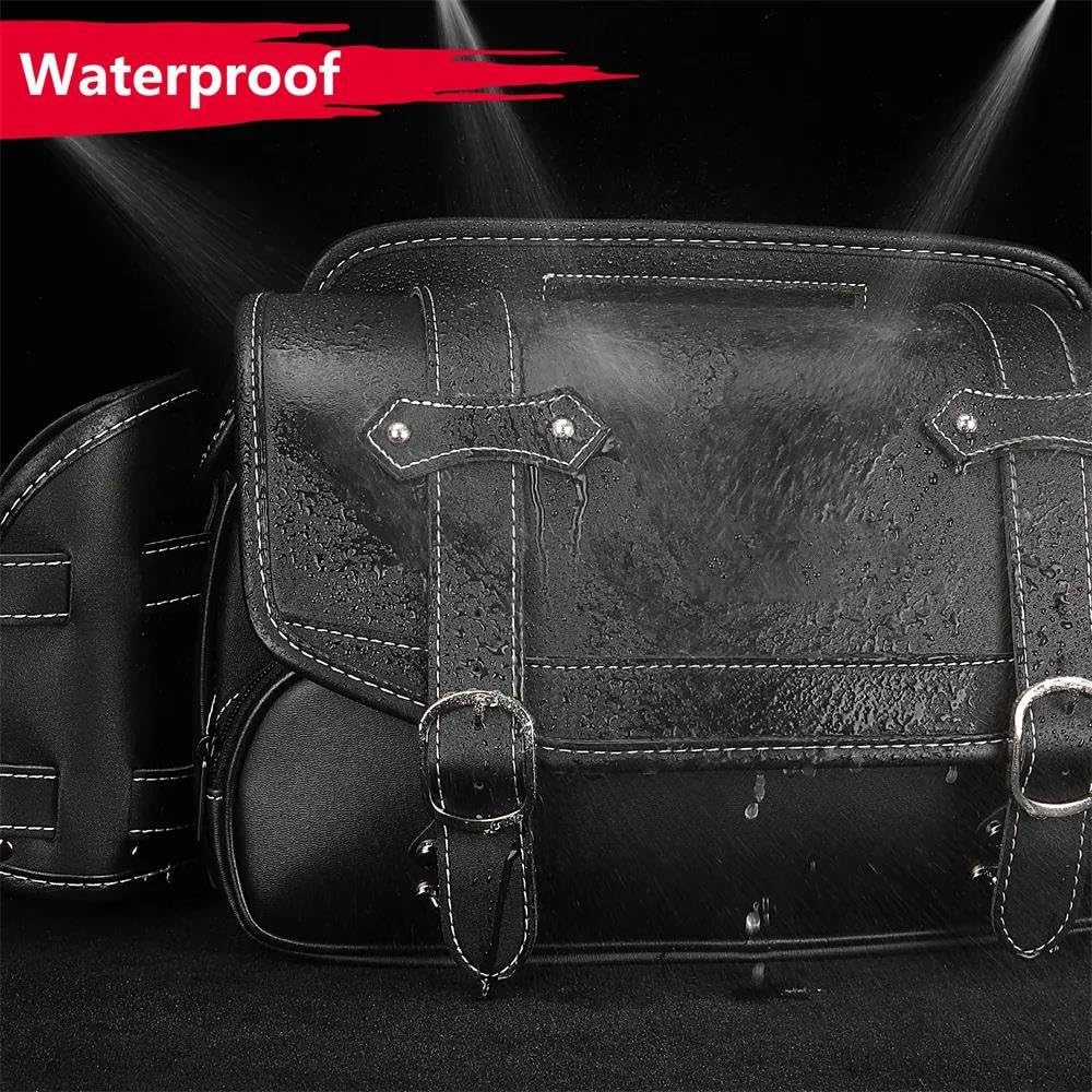 ブラックレザーのオートバイサドルバッグはPUレザー素材で作られており、防水性があり、貴重品が雨に濡れるのを効果的に保護できます。
