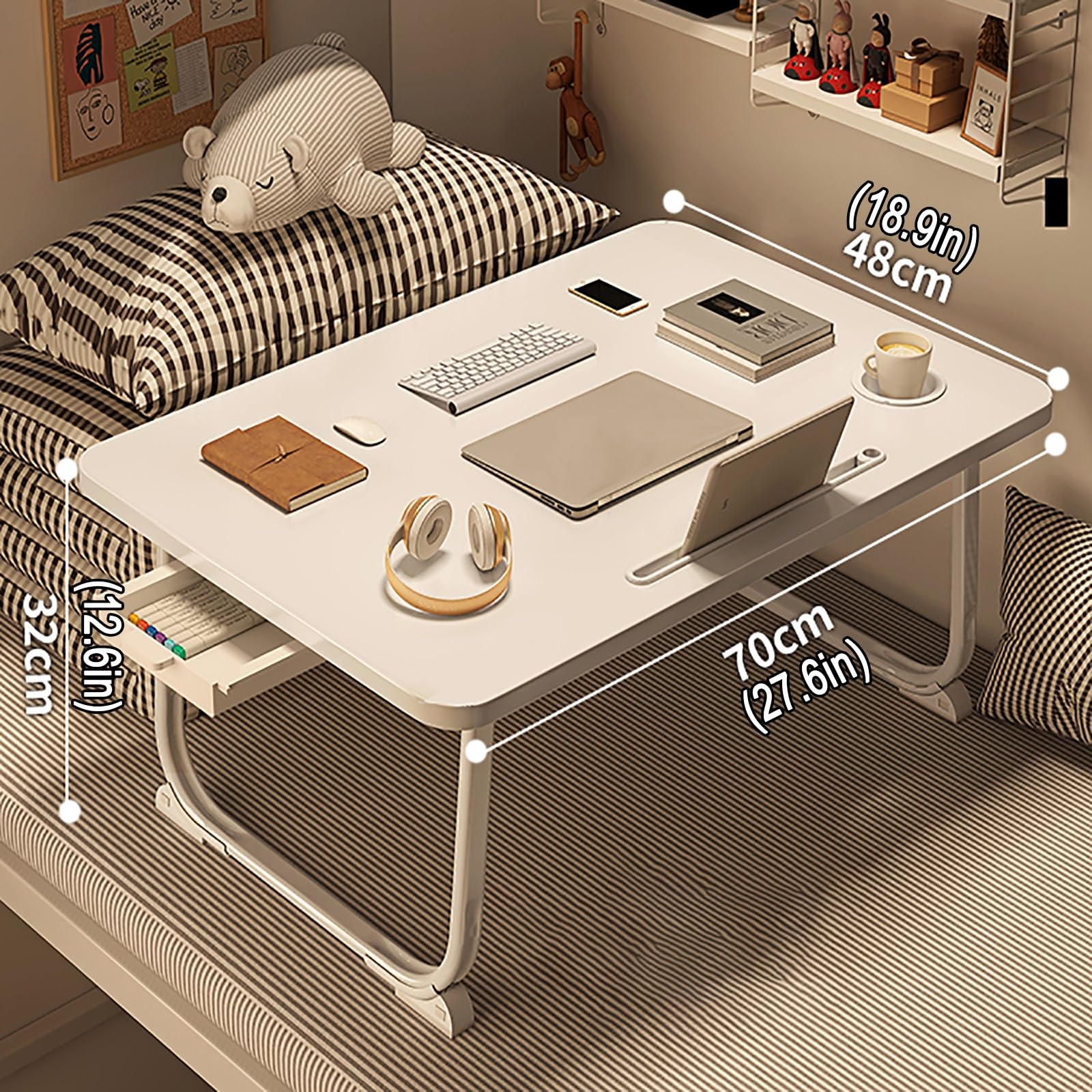 カードスロットと引き出し付きのポータブルラップトップ折りたたみベッドテーブル、ウォーターカップホルダー付きラップトップベッドトレイテーブル、折りたたみ脚付きベッドトレイテーブル、ベッド/ソファ/床で仕事や映画鑑賞が可能 (Color : Oak Size : 23.6*18.9*12.6in)