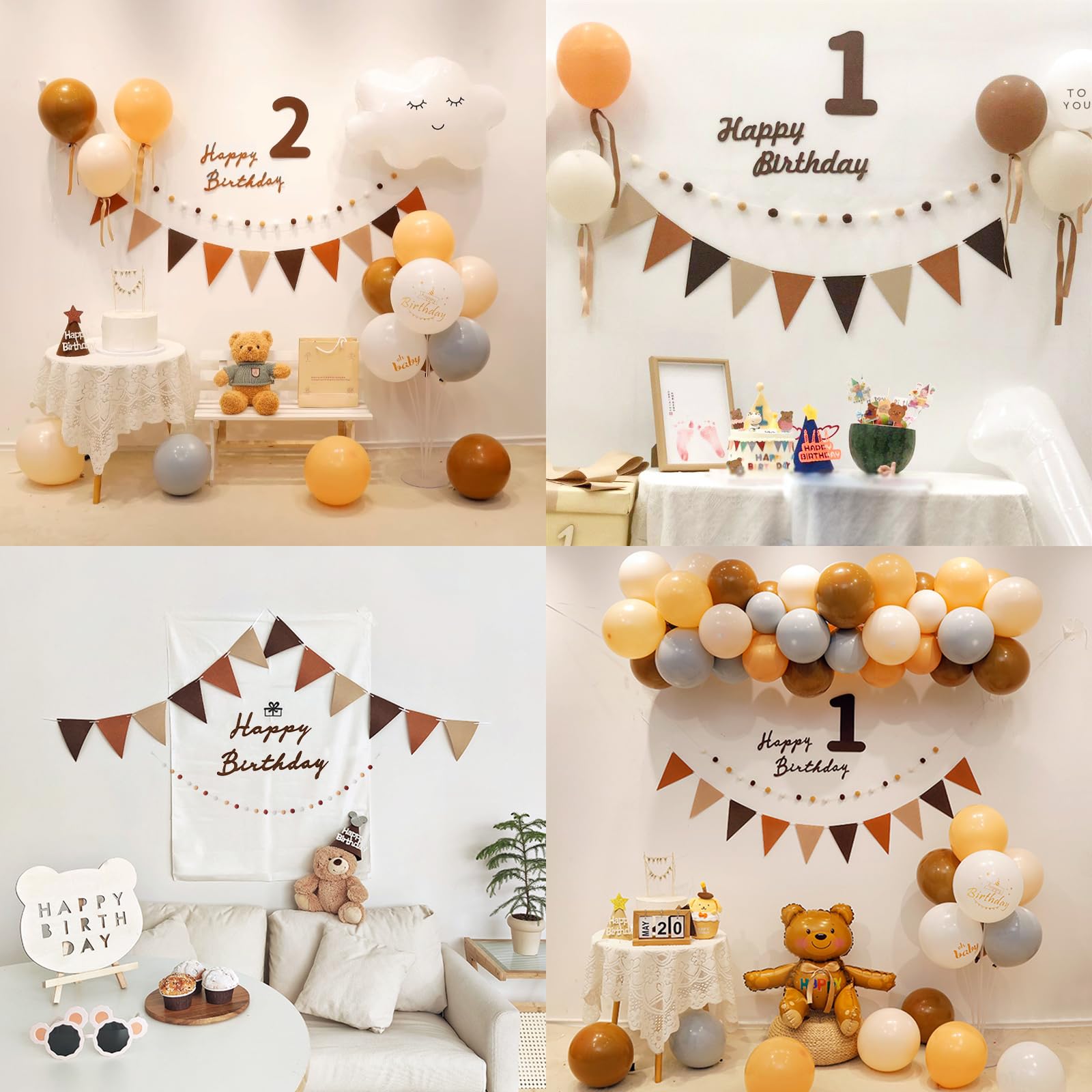 【多機能応用シナリオ】:この誕生日飾りセットは、誕生日パーティー、結婚式、ホリデーパーティー、赤ちゃんの満月など、さまざまなお祝いに適しています。 ヴィンテージ3色ヤーンボールガーランドはドアや壁に掛けることができ、ハッピーバースデーフェルト布バナーは目立つ位置に掛けるのに適しており、フェルト布フラッグガーランドは壁や天井を飾ることができ、どんな機会にも暖かく楽しい雰囲気を加え、全体的な装飾効果を高めます。