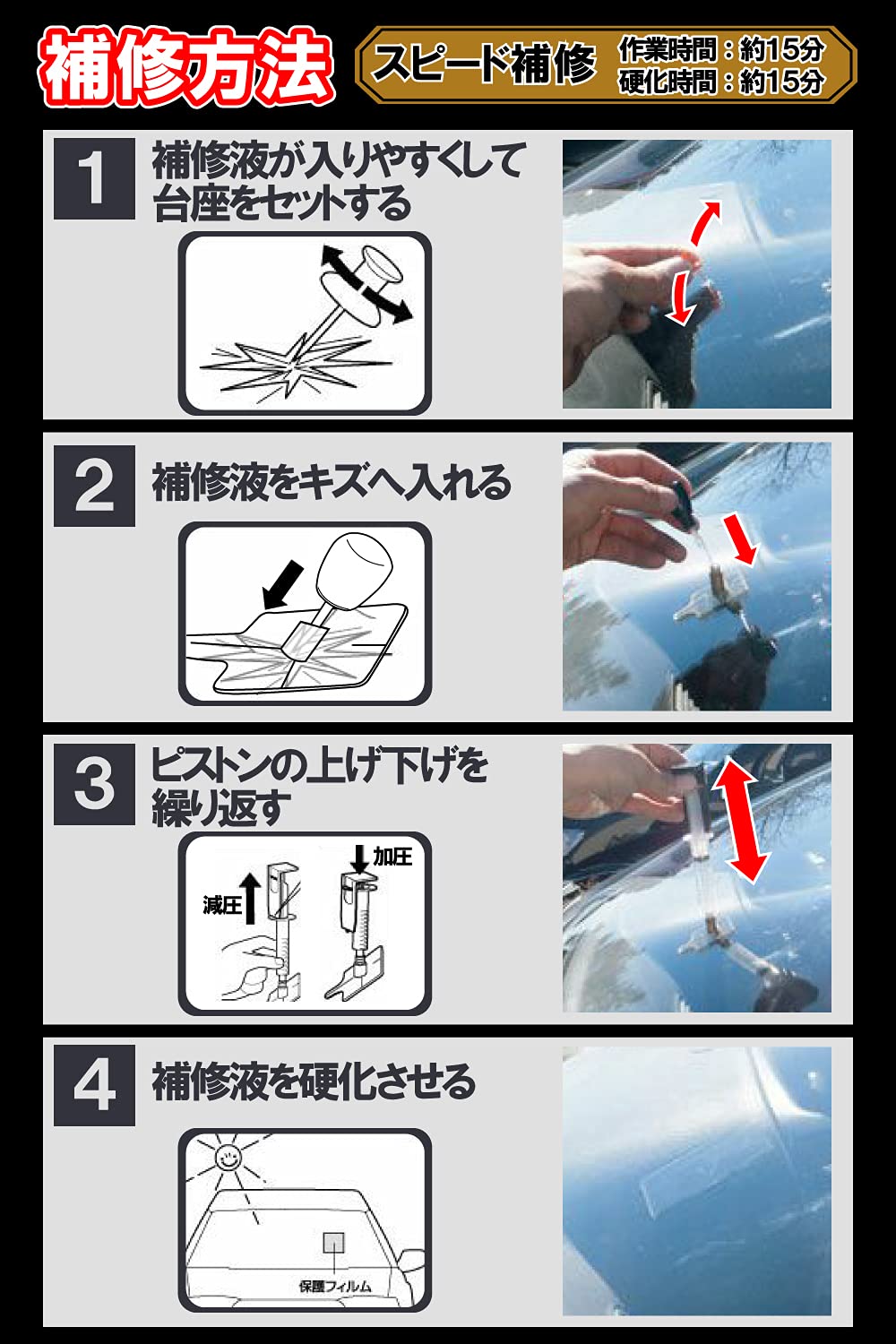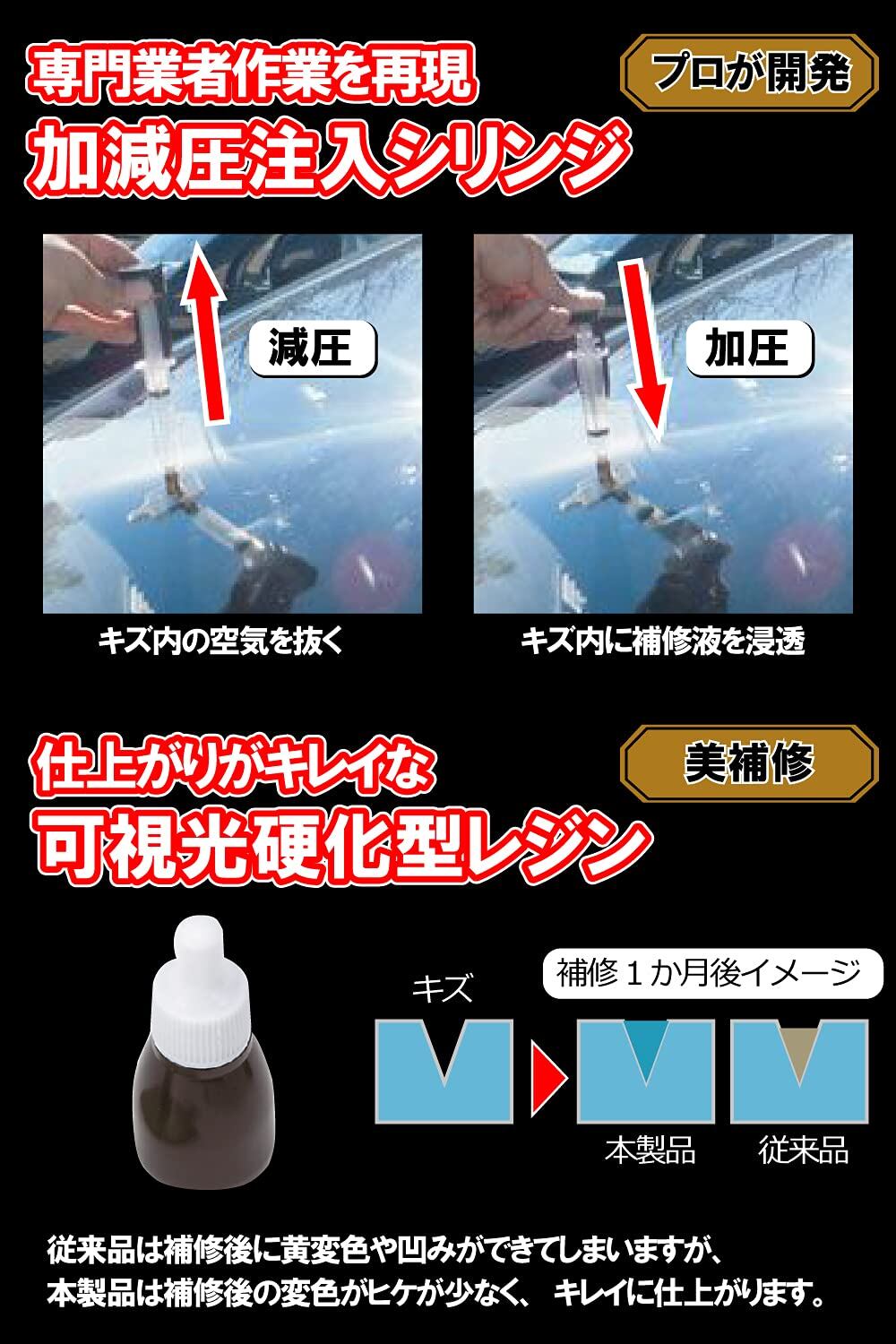 ※本製品は業務用と異なりフロントガラスの軽度のキズ補修を目的とした製品です