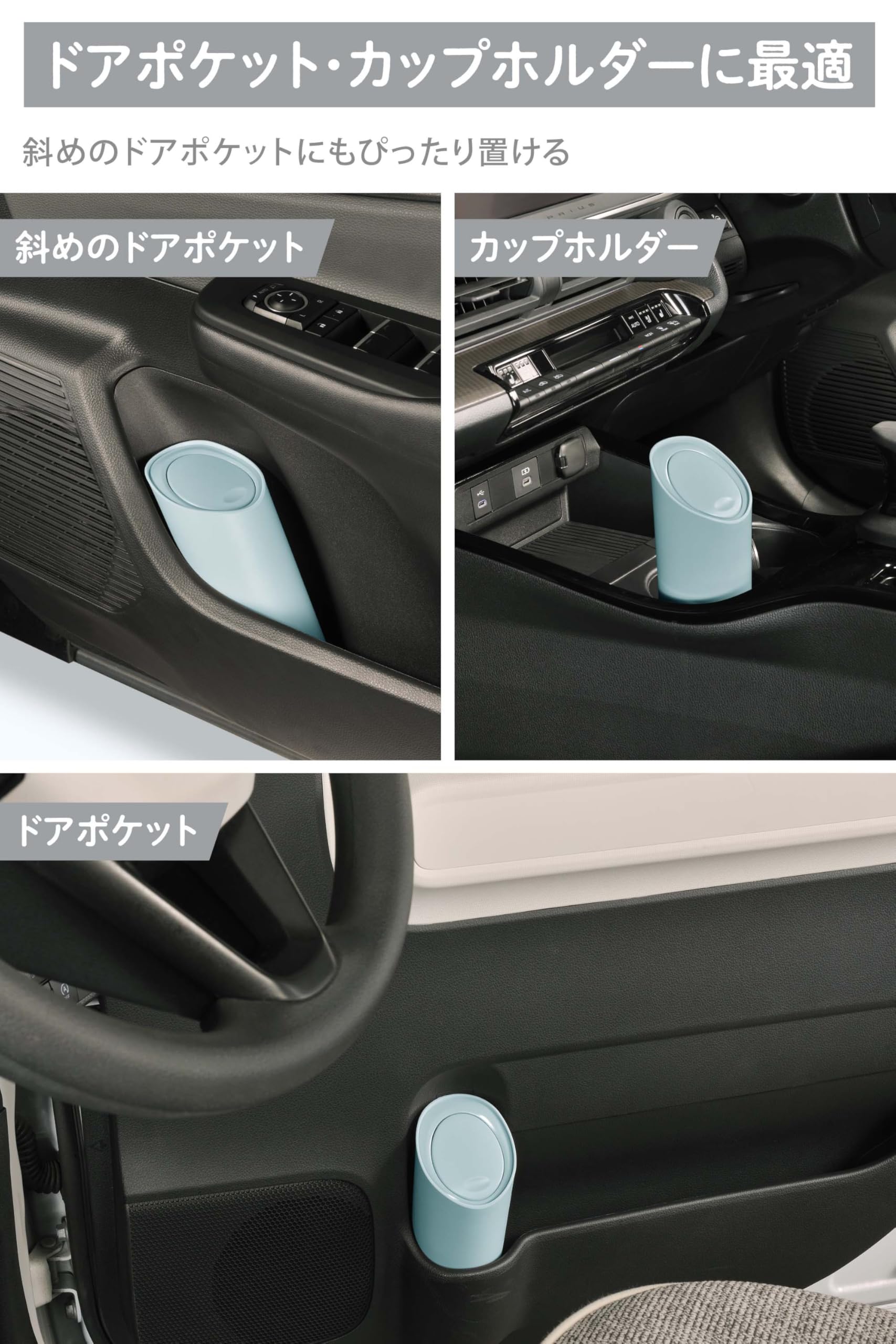 「ドアポケットに最適! ”くすみカラー”ソフトゴミ箱」 車両のドアポケットでの使用に適したボトル形状のゴミ箱