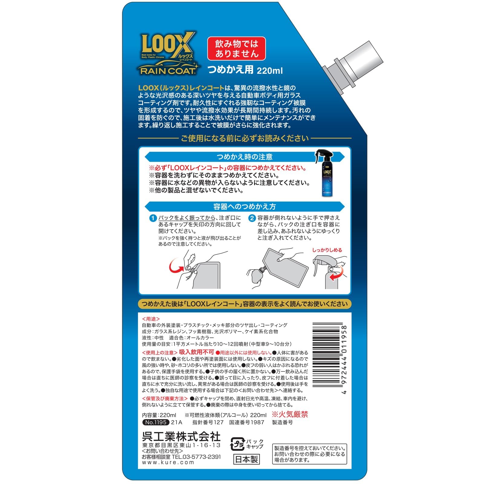 KURE(呉工業) LOOX(ルックス) レインコート つめかえ用 220ml 超耐久撥水ボディコート 1195
