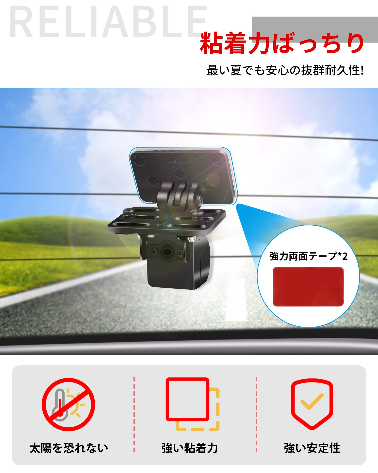 コンパクトなデザインと軽量:コンパクトなサイズで、リアカメラをしっかり固定できます。 リアガラスに取り付けても、はみ出さず、リアビューの邪魔になりません。