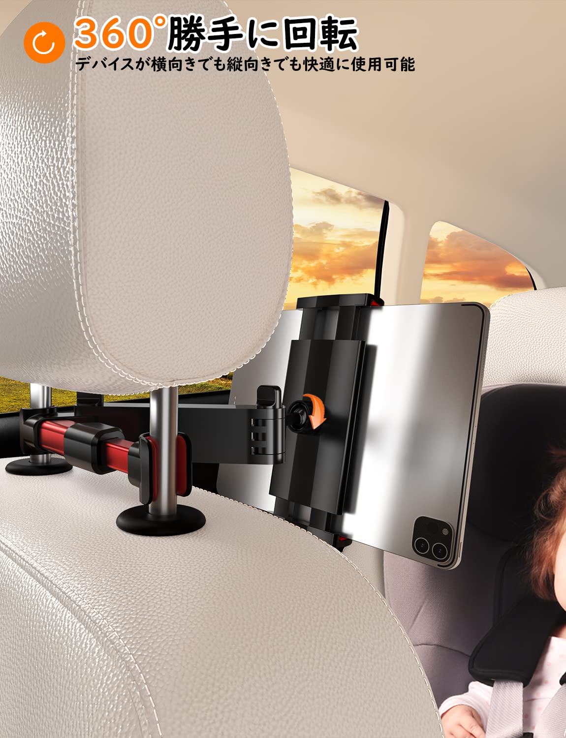 【在庫セール】TRYONEタブレット ホルダー TRYONE車載ホルダー ヘッドレスト スタンド 伸縮アームスタンド スマホ ホルダー ヘッドレスト バーの適用幅範囲12cm~15cm 後部座席用4.7-10.5インチのiPad 2/3/4/mini/air/Galaxy Tab/Google Nexusn対応(赤) | POPストア