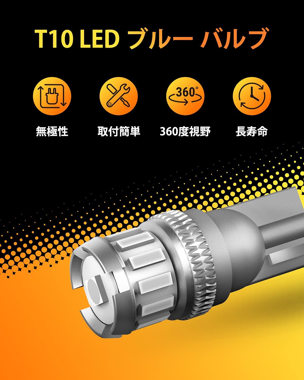 【2022最新】OXILAM T10 LED ブルー 高輝度 爆光 CANBUSキャンセラー内蔵 ポジションランプ ナンバー灯 ルームランプ メーターランプ 無極性 DC12V ウエッジ球 車用 2個入 | POPストア