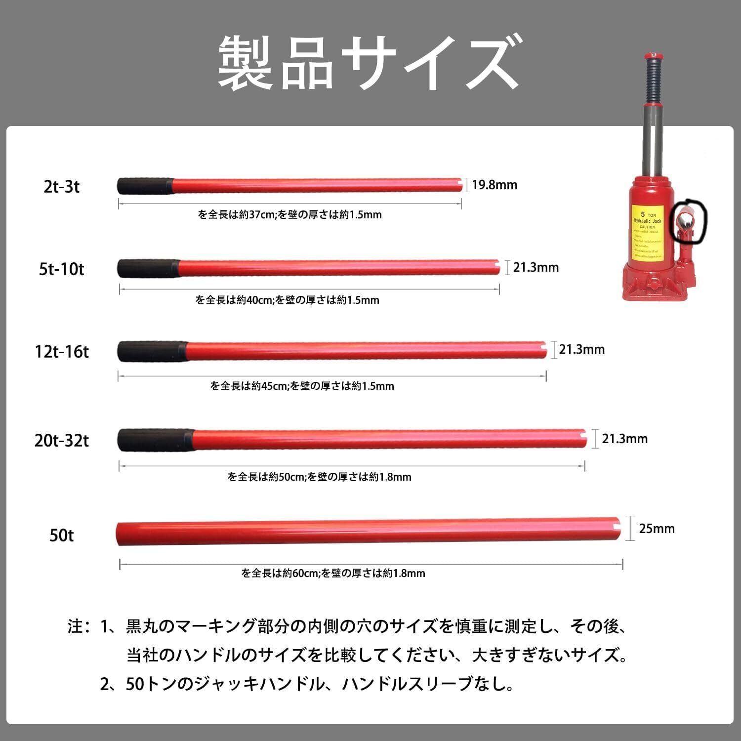 5t~10t ハンドル太さ21.3mm、肉厚1.5mm、長さ約40cm。