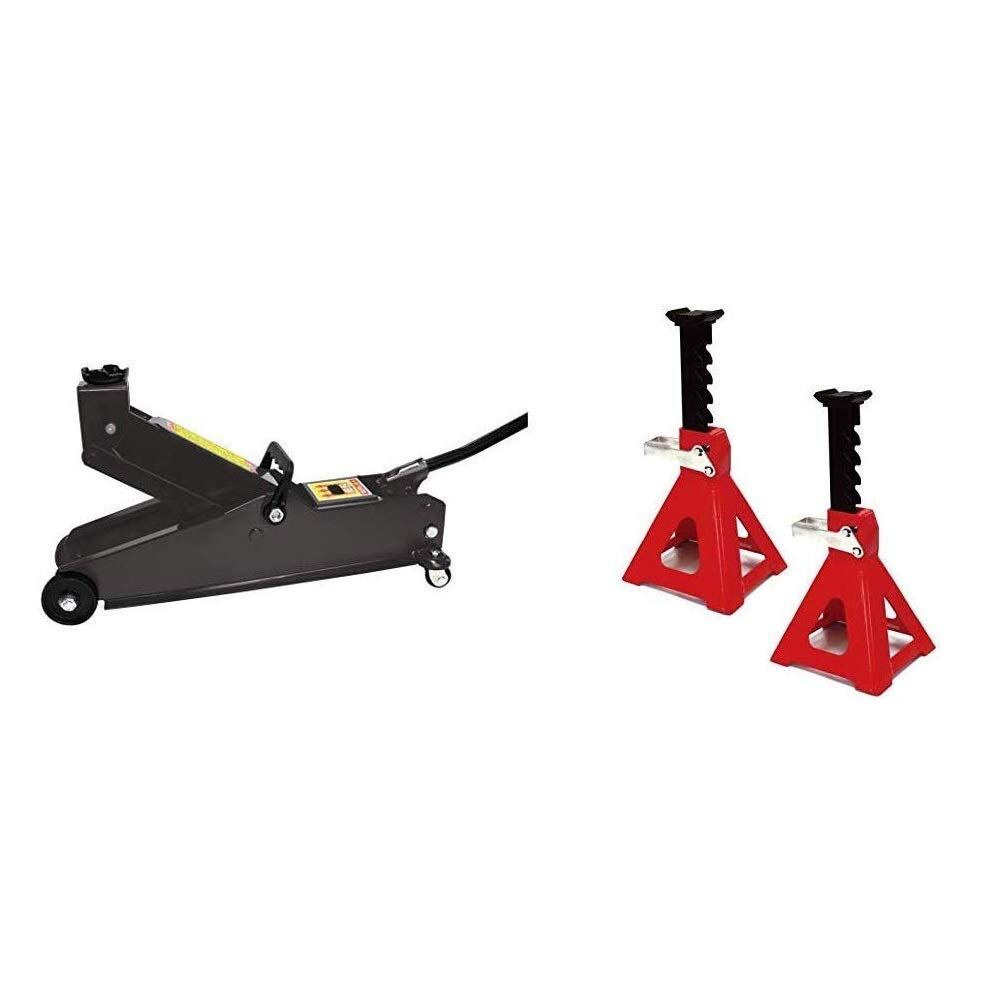 【新着商品】エマーソン(Emerson) フロアジャッキ & ジャッキスタンドセット(油圧式フロアジャッキ3t EM-514 SG規格適合品 最低位135mm/最高位435mm & ジャッキスタンド 3t 2個セット EM-104 高さ6段階調整 最低位260mm/最高位405mm) | POPストア