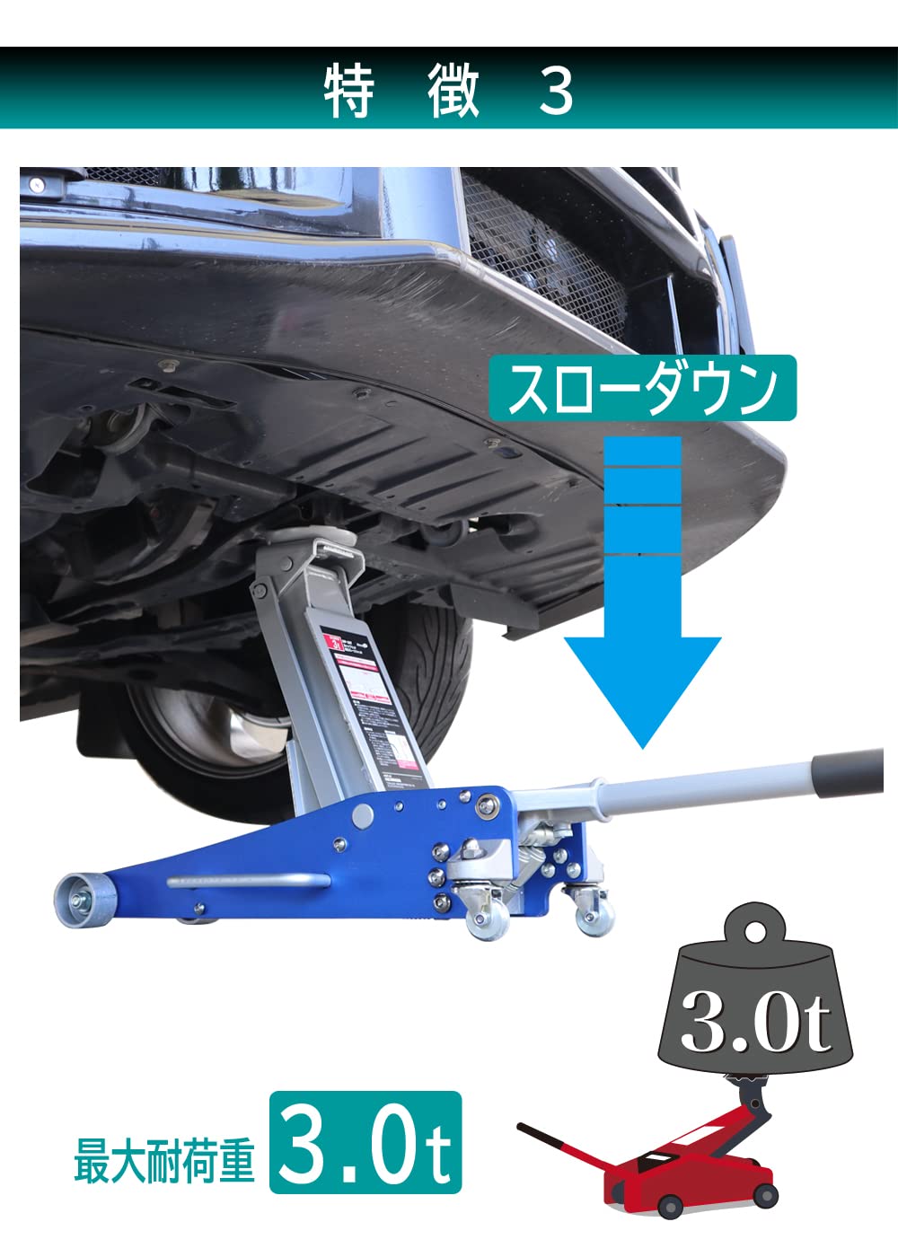 ●ジャッキダウン時、安全にゆっくり下がる スローダウン機能 付き